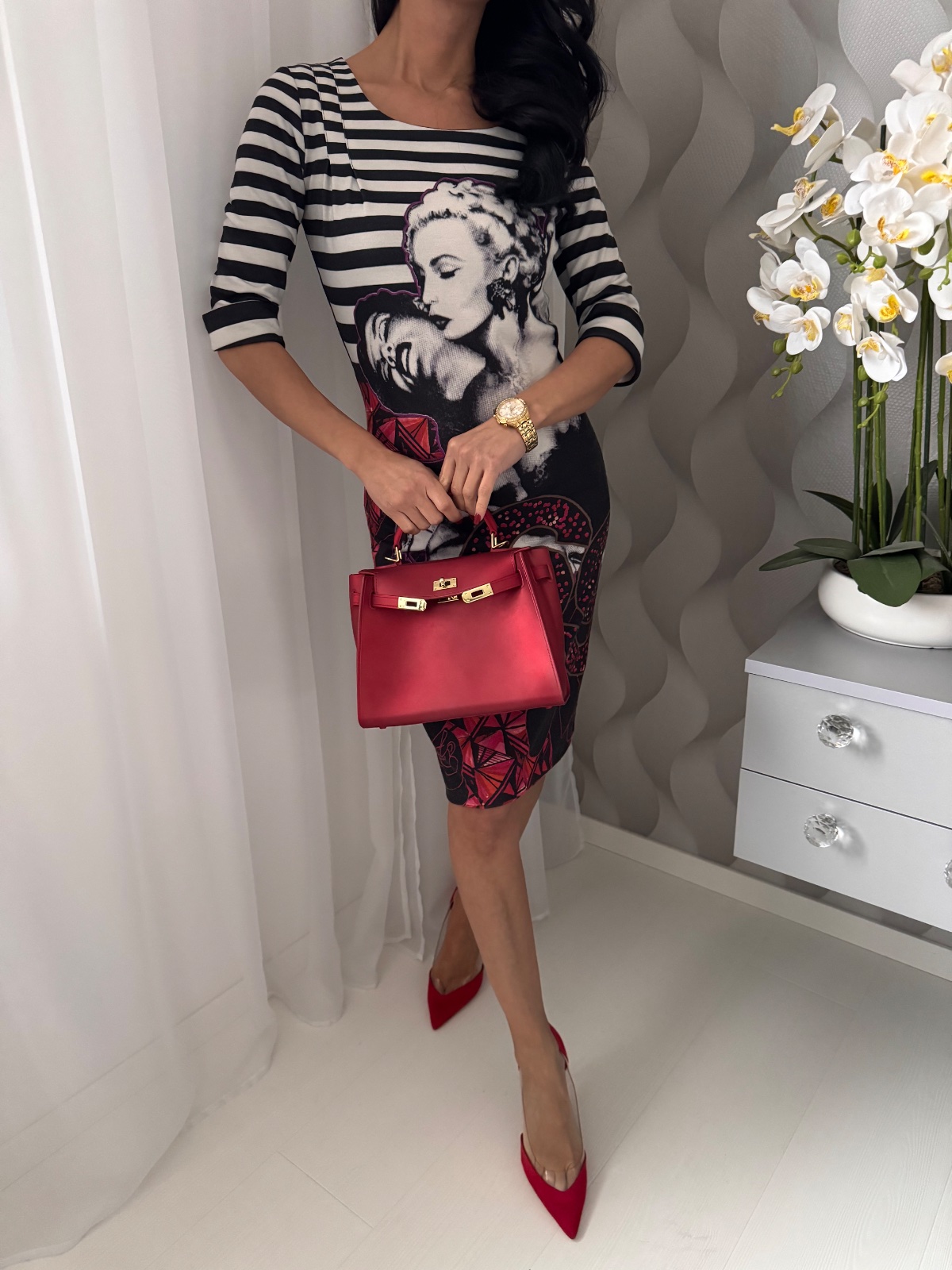 • Pre porovnanie - modelka na fotkách nosí veľkosť XS a meria 160 cm.