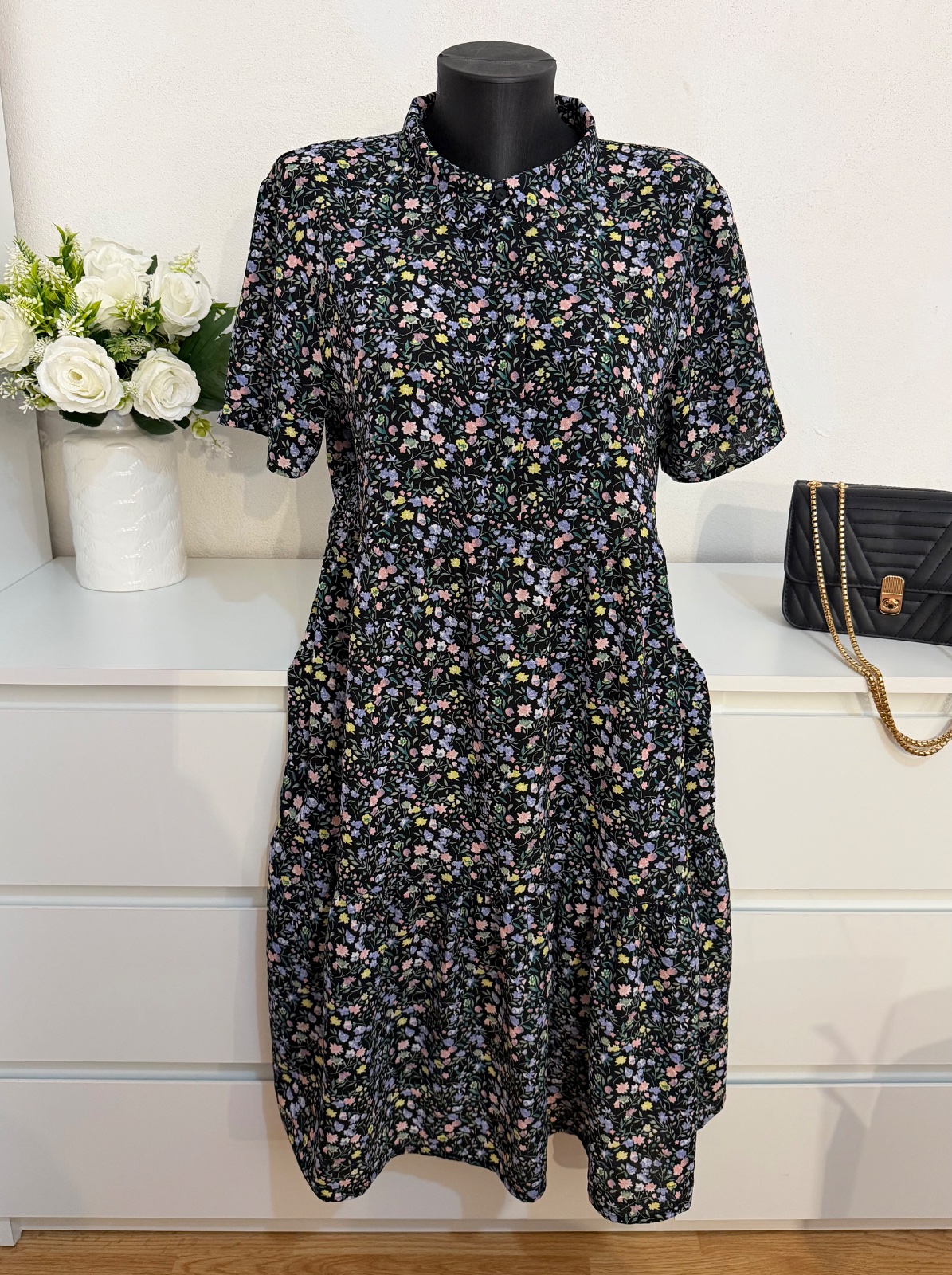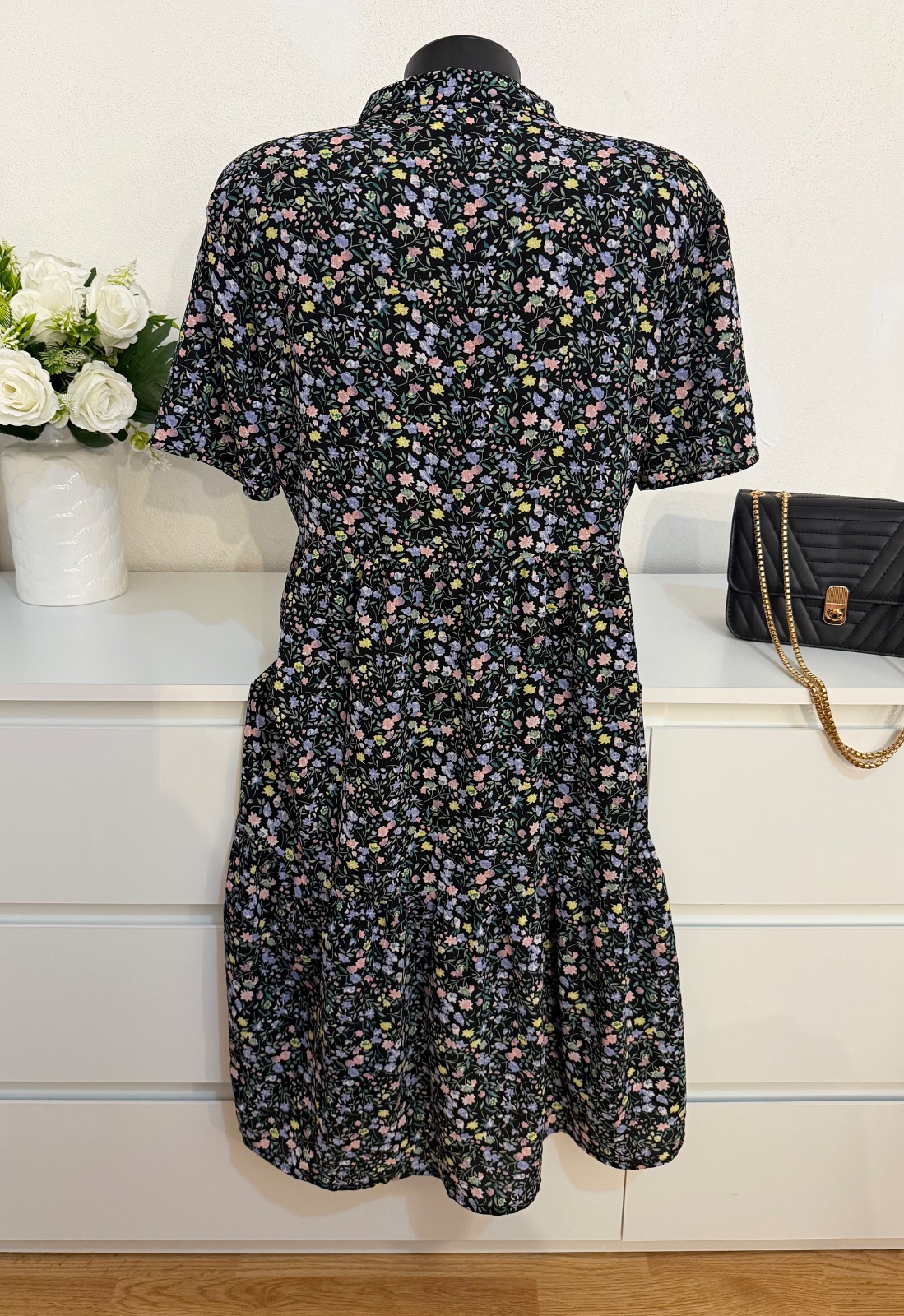 Elegantné a nadčasové šaty značky Jacqueline de Yong v čiernom prevedení s jemným farebným kvetinovým vzorom 🌸