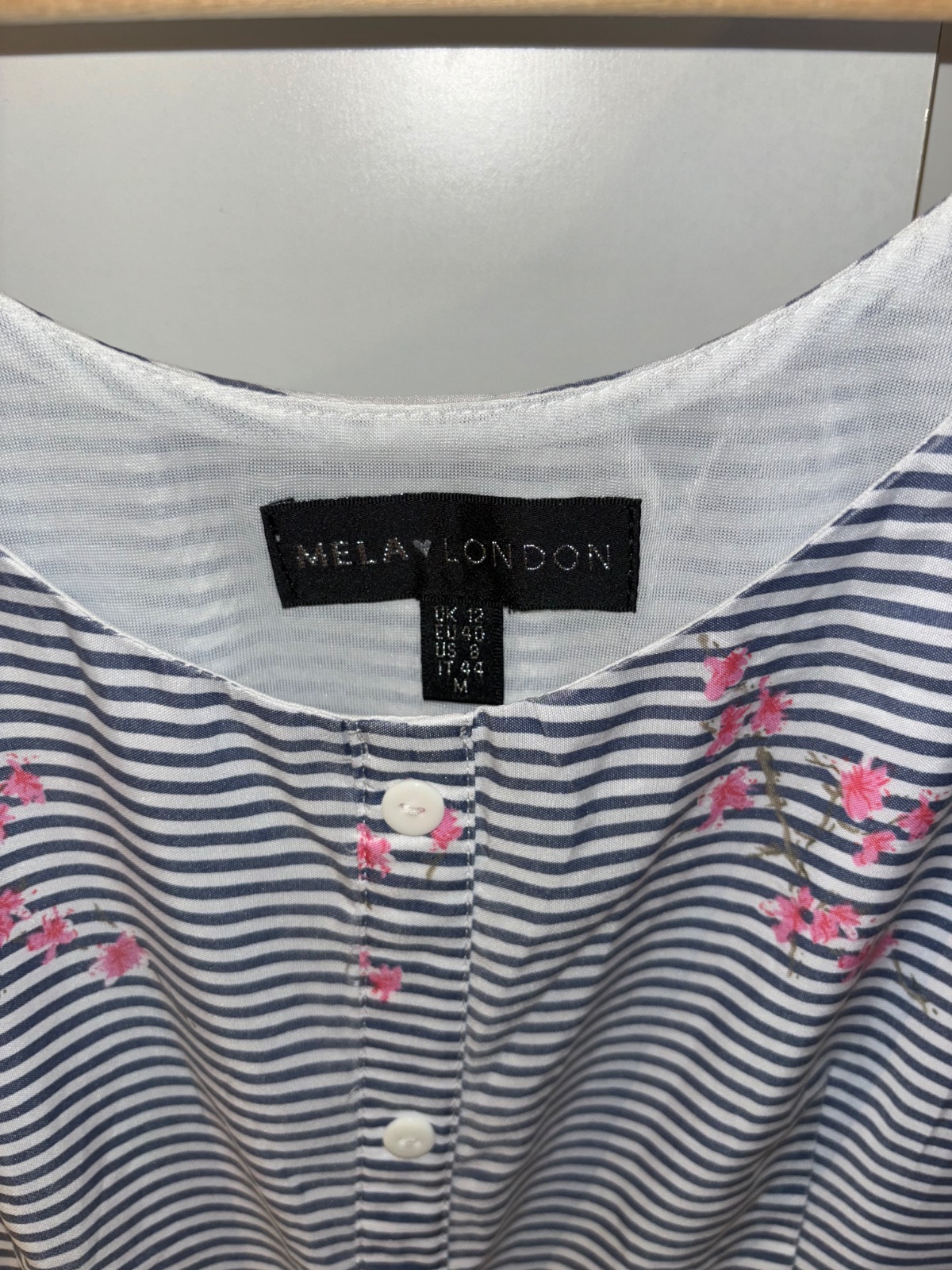 Nosené šaty v super stave. Veľmi ľahučke, vzadu majú viazanie. Uvadzaná veľkosť 40 podľa mňa skôr 38.Zn.Mela London.Cena 10€+ poštovné