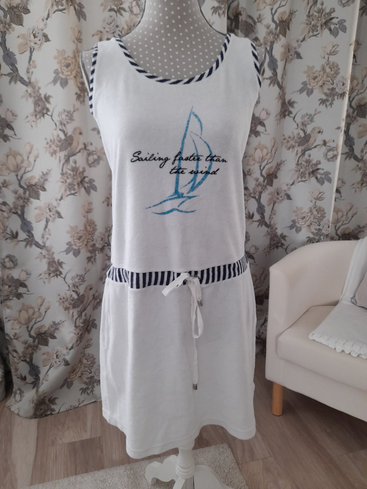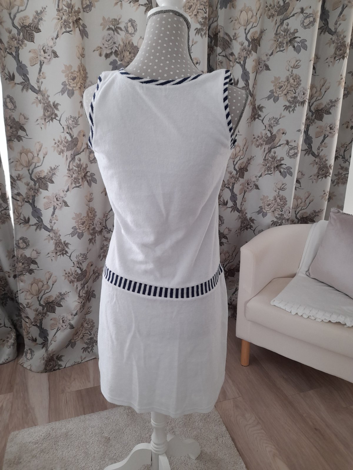 Predám krásne plažové frote saty. Majú namornicky motív, snurku na zavazovanie. Veľmi príjemný frote materiál, vhodné k bazénu, k moru... Sú naozaj skvelé. Pôvodná cena 40e, kvalitna značka Vamp, vyrobené v EU. Sedia na velkost S. Číslovanie majú písané myslím talianske, preto veľkosť 40 je veľkosť S.