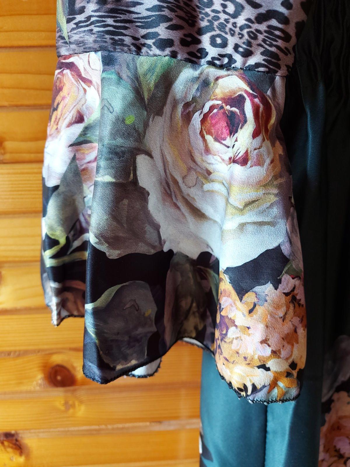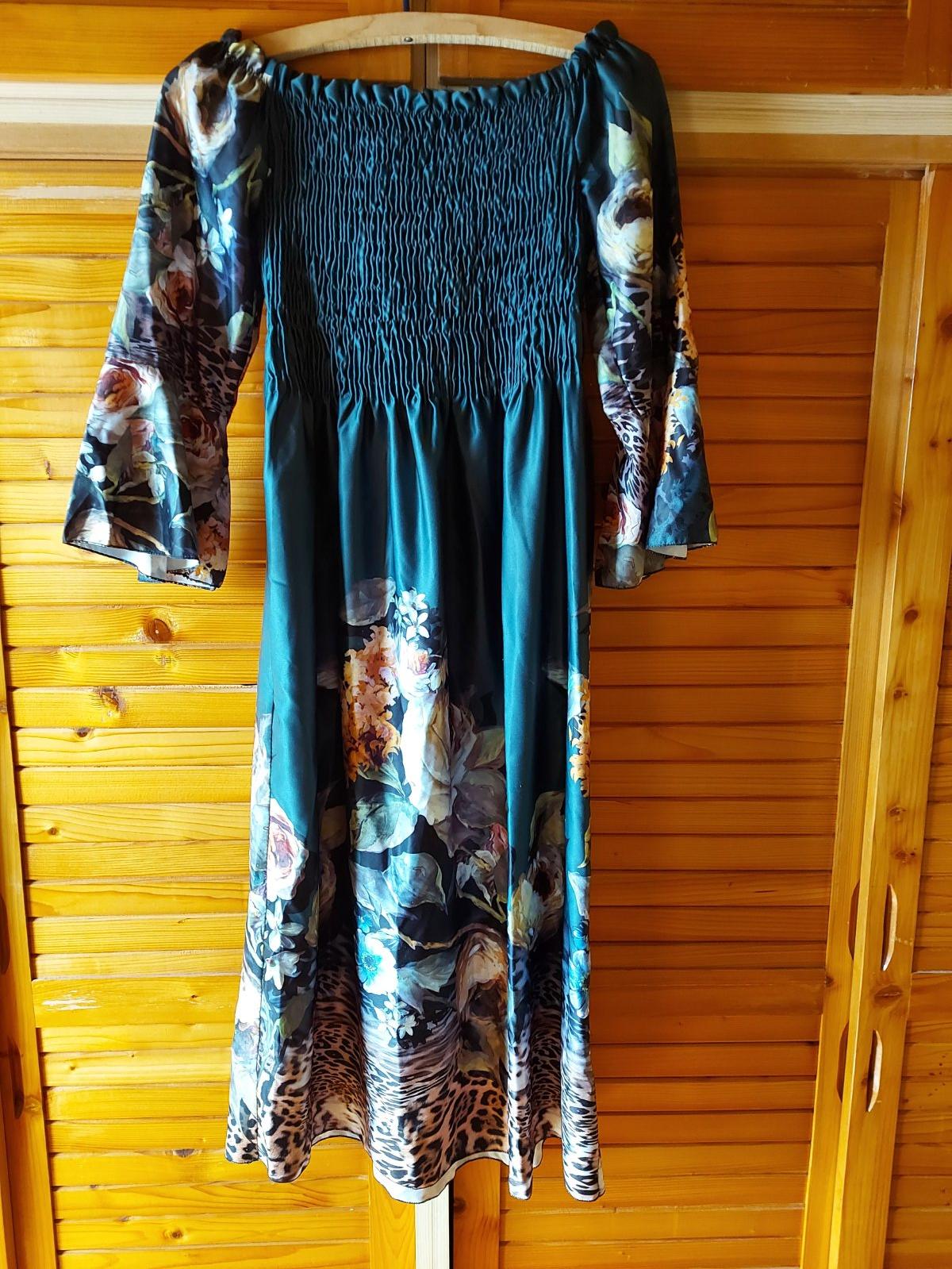 Krásne zelené šaty z príjemného materiálu, S, M, š. pod pazuchami v kľude - 31-veľmi elastický driek-viď foto, celková dĺžka - 103, dĺžka rukávu - 44 - na konci rozšírené-viď foto