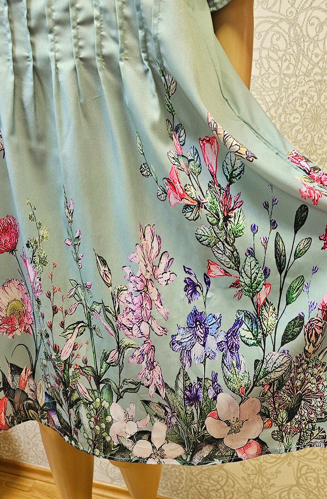 Výborný stav. Dĺžka 91 cm, šírka v hrudníku 51x2 cm. Na bokoch vrecká. Jemný padavý materiál.