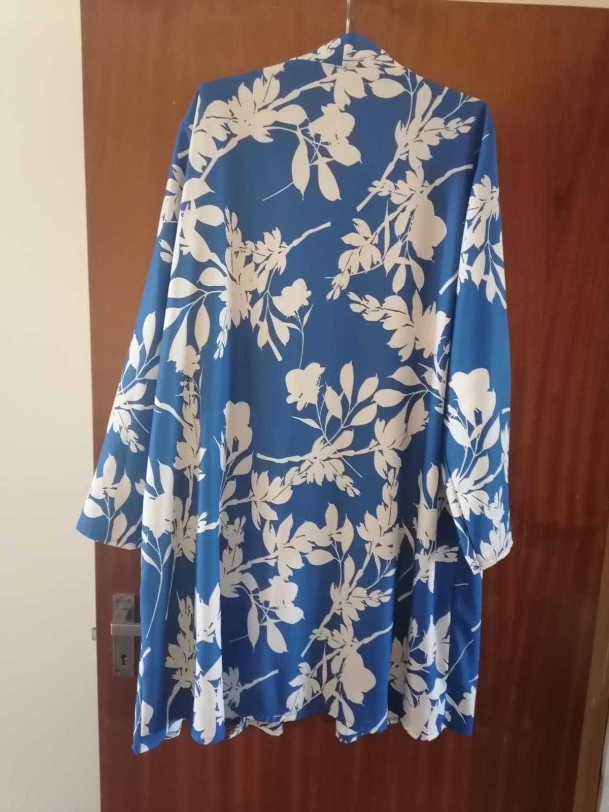 krásne nenosené šaty, sú spolu zošité s tým sakom 48 aj viac, prsia 126 dlžka 92 modrá časť a sako je dlhé 98 cm, cena 14€ aj s poštou