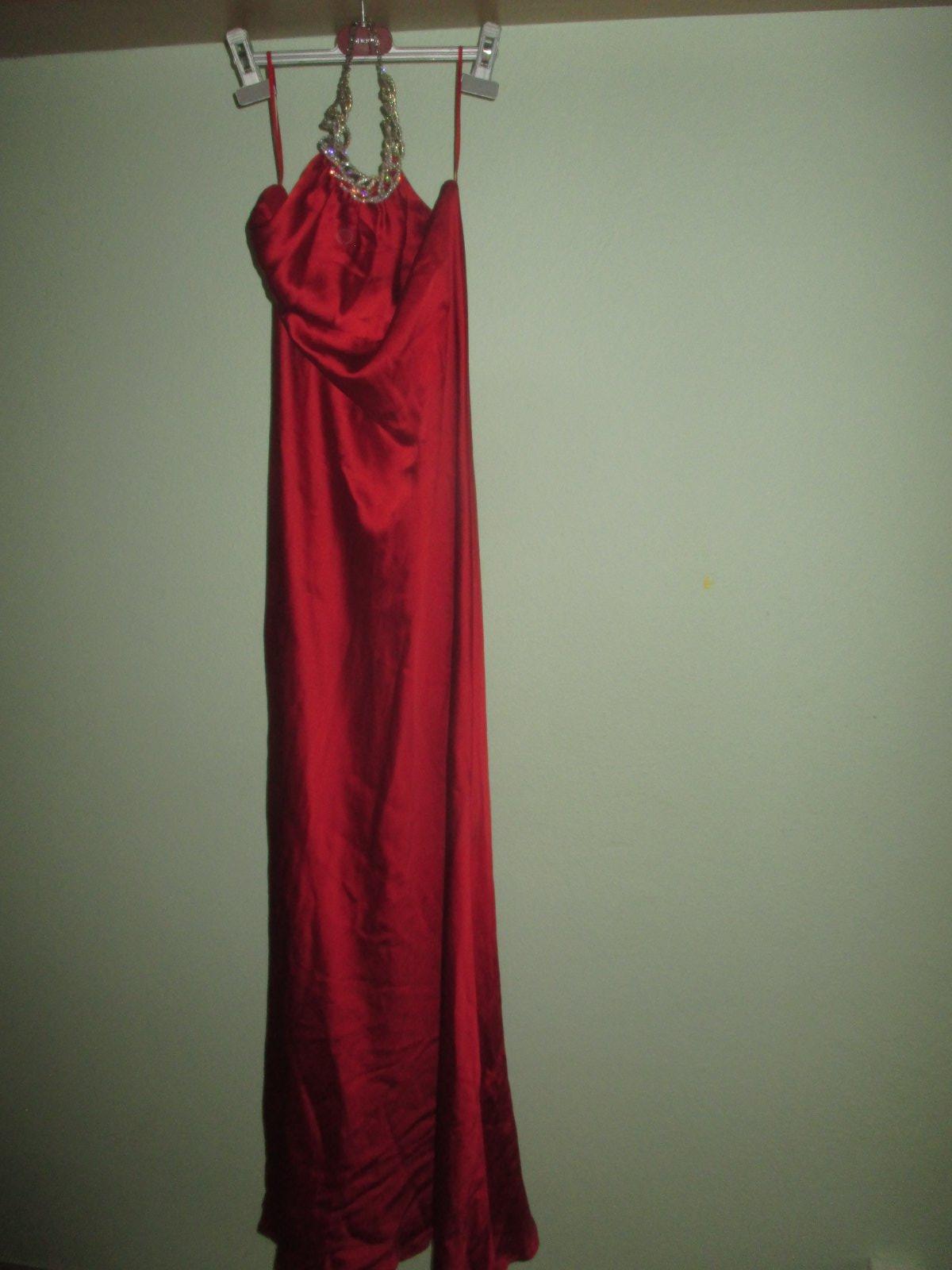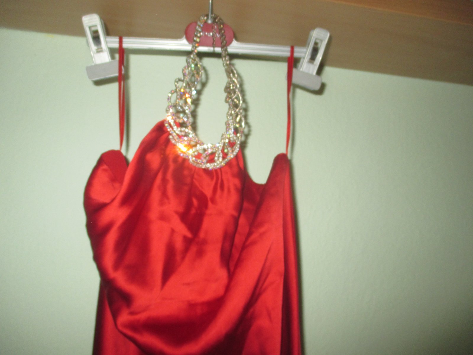 Luxusné šaty, 1 krát oblečené, stačí prežehliť a sú tip top, vhodné na veľ. S, dĺžka meraná od krku - 145 cm, š-42*2 cm, chrbát je odhalený, perfektné s kamienkami okolo krku, ktoré sa nádherne ligocú
