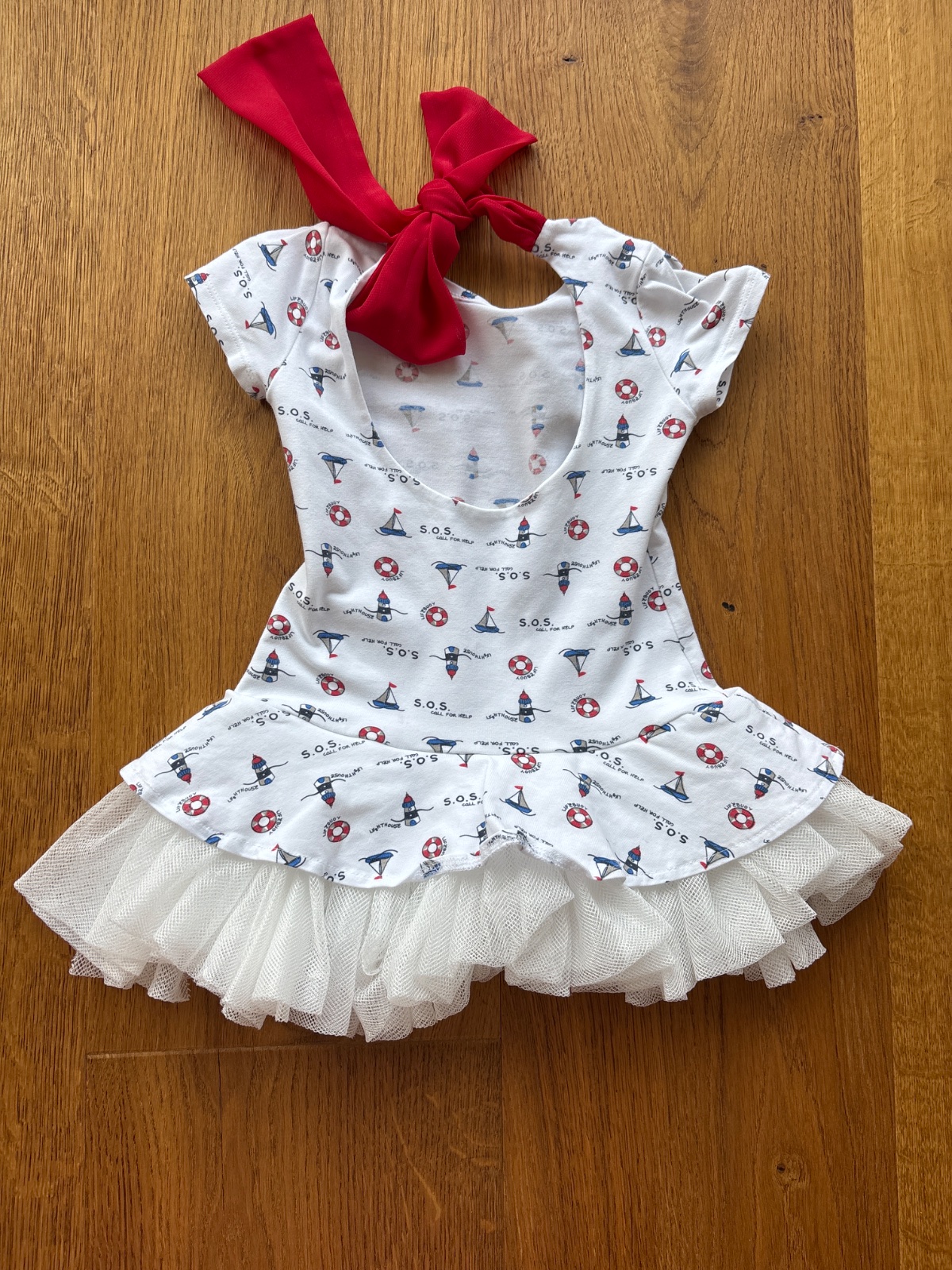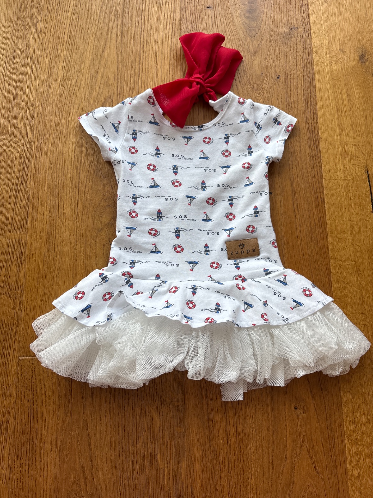 Krasne saty Original Marines, velkost 2-3 roky. Vrchna cast je bavlnena, volany su z lesklejsej latky a pekne drzia tvar. Cena + postovne