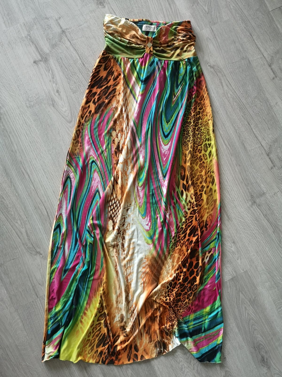 Predám letné šaty bez ramienok, ľahký a chladivý materiál, dĺžka šiat 122 cm, šírka na prsiach 34 cm. Hore je gumička, dá sa natiahnuť do 42 cm.