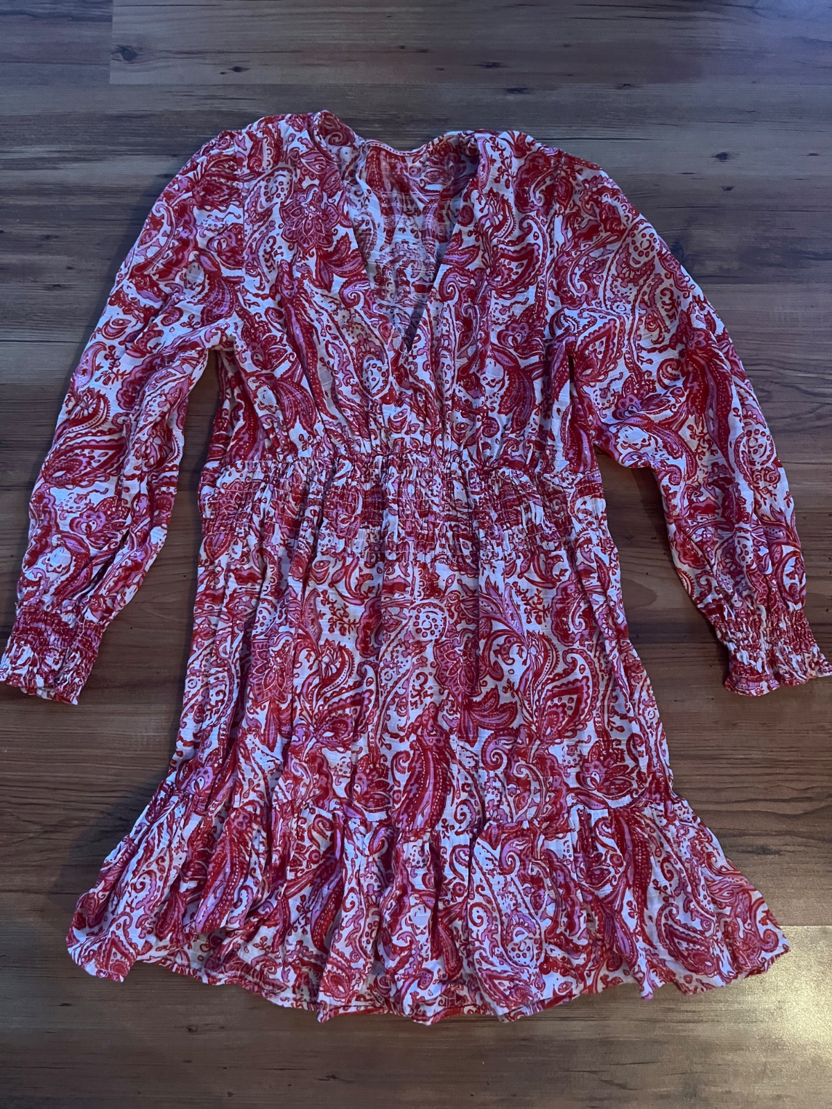 Tmavočervené oversize šaty, raz oblečené. Dĺžka 90 cm. Bavlna + elastan. Sadnú aj na M.