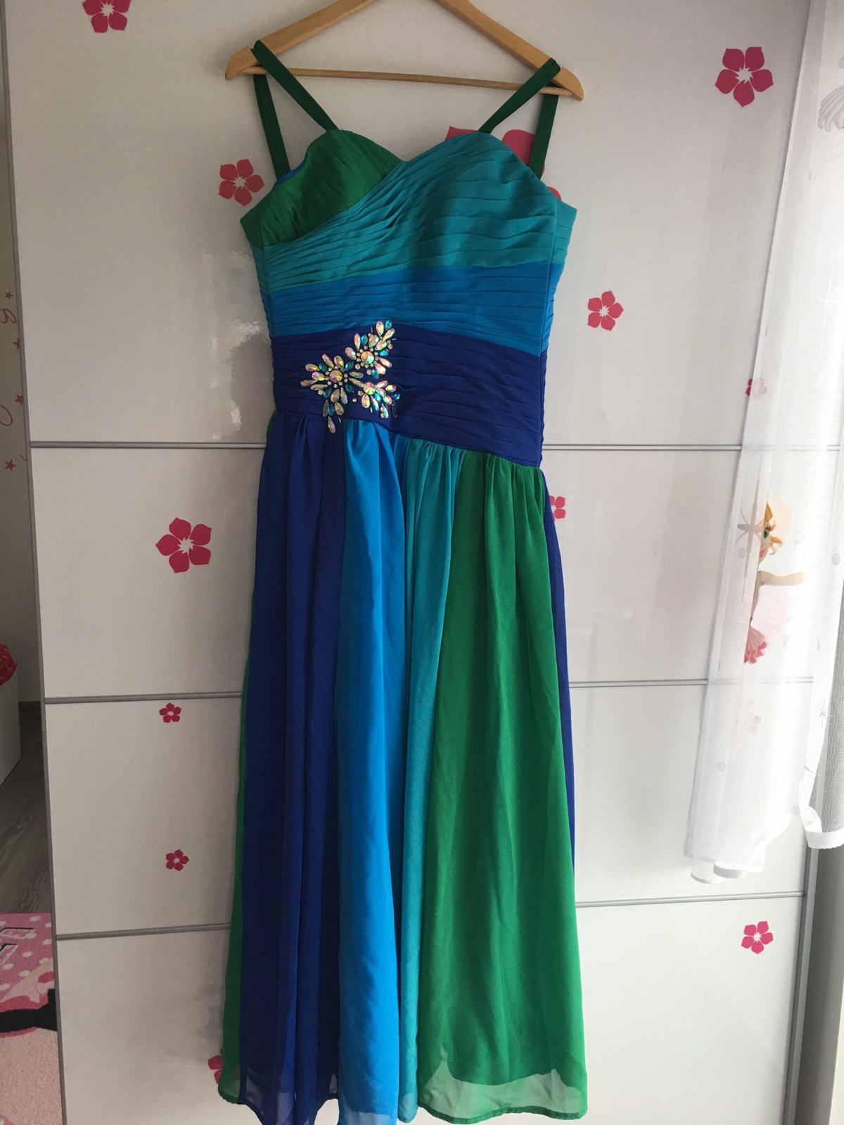 dlhe saty na ples, inu sviatocnu prilezitost, chrbat prekrizene Mam 180cm, vhodne aj pre vyssiu Prij r mny material Velkost 36/38, nie som drobna
