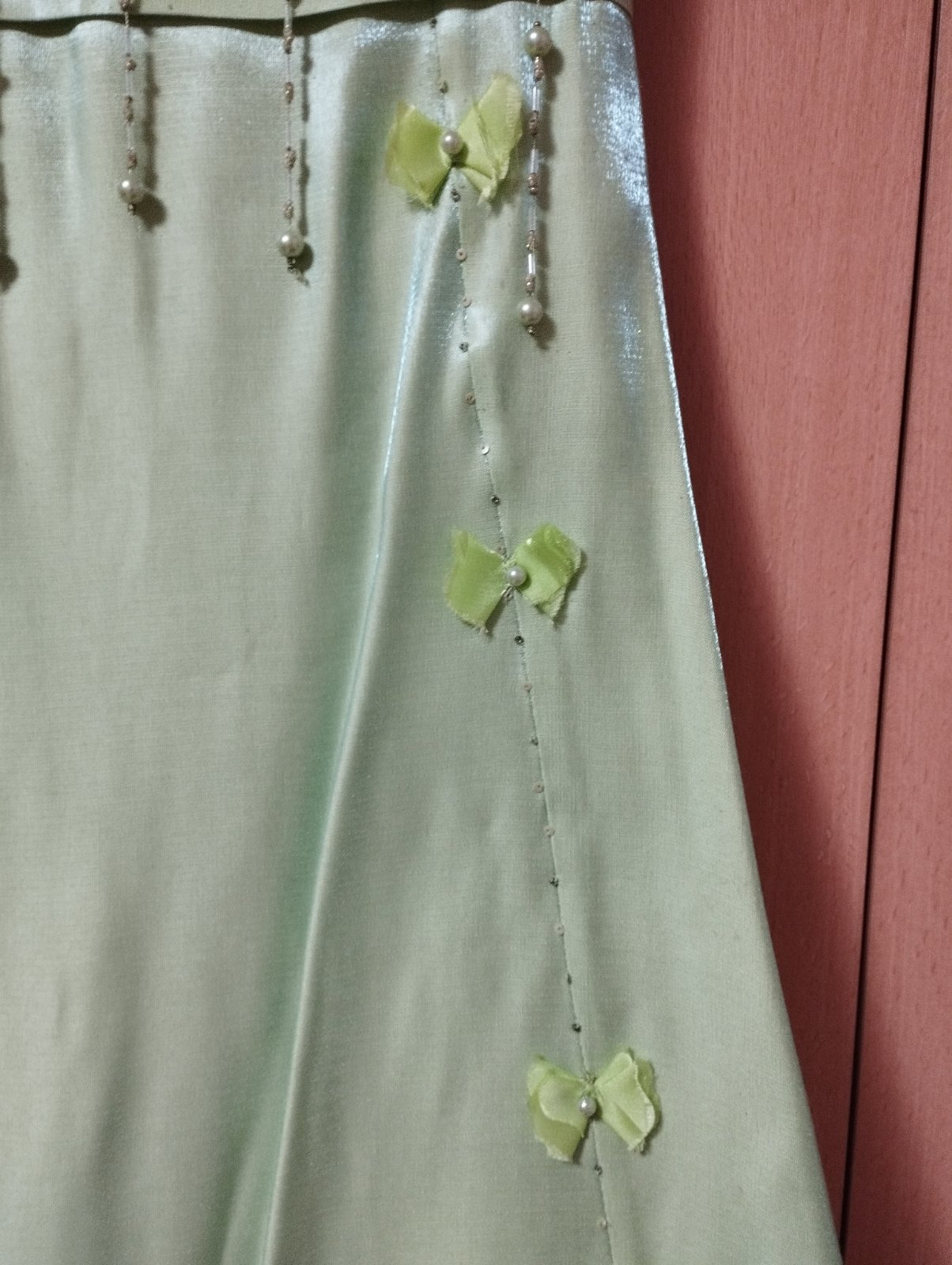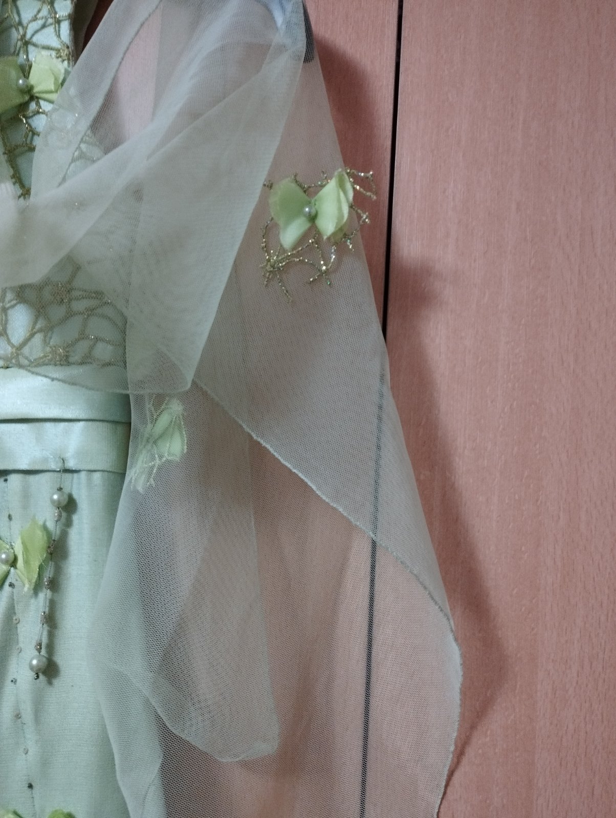 Prekrásne šaty v bezchybnom stave. Oblečené raz. V skutočnosti krajšie, ako na fotkách. Veľmi príjemné na dotyk, aj na nosenie. Farba taká jemná bledo zelená až svetlo sivá - zaujímavá. Určite odpo...