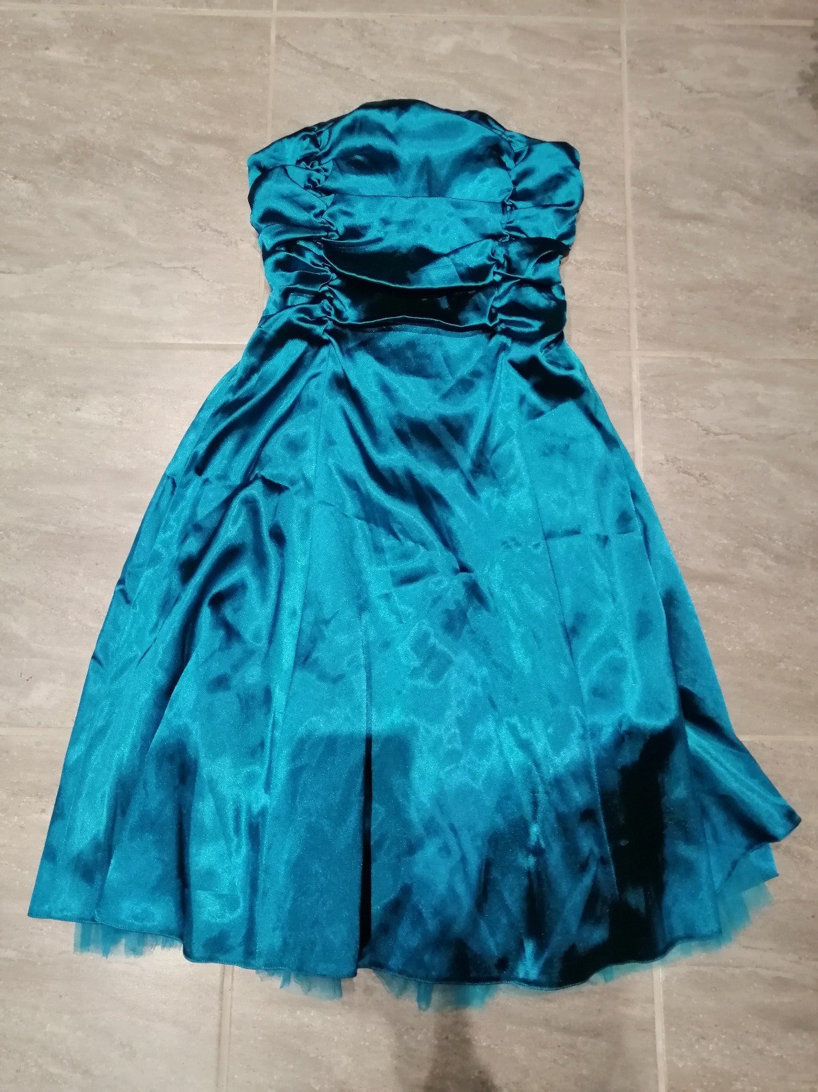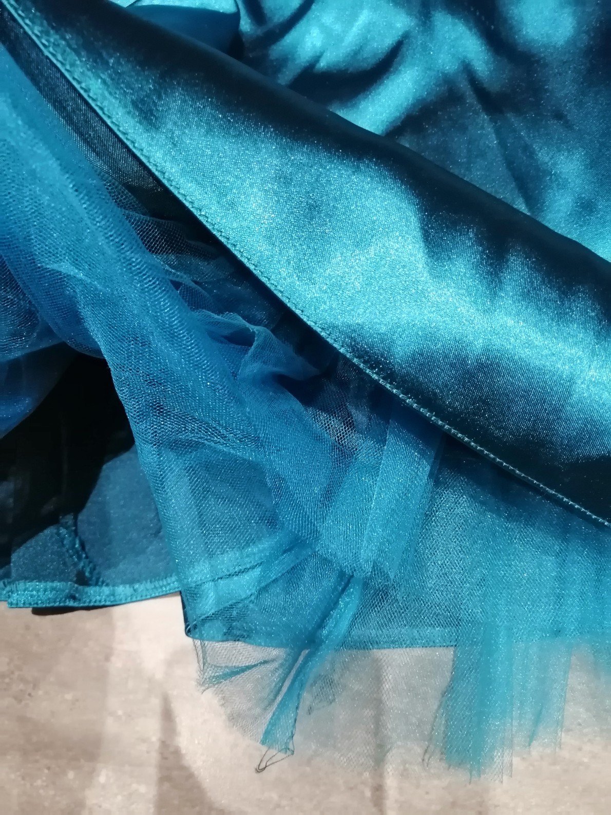 Stav ako nové. Podšité. Tyl, spodnička. Zips na boku. Šnurovanie na chrbte. Živôtik s kosticami. Prsia vytvarované, vypchávky. Stáli 220 EUR.