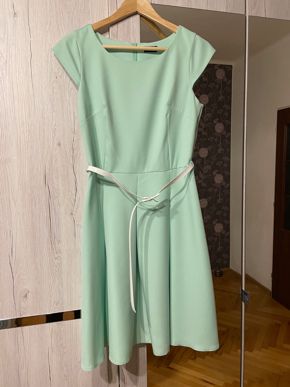Raz oblečené krasne mentolové šaty so zlatými bodkami. Trošku zúžené krajčírkou cez prsia. V prípade záujmu rada premeriam.