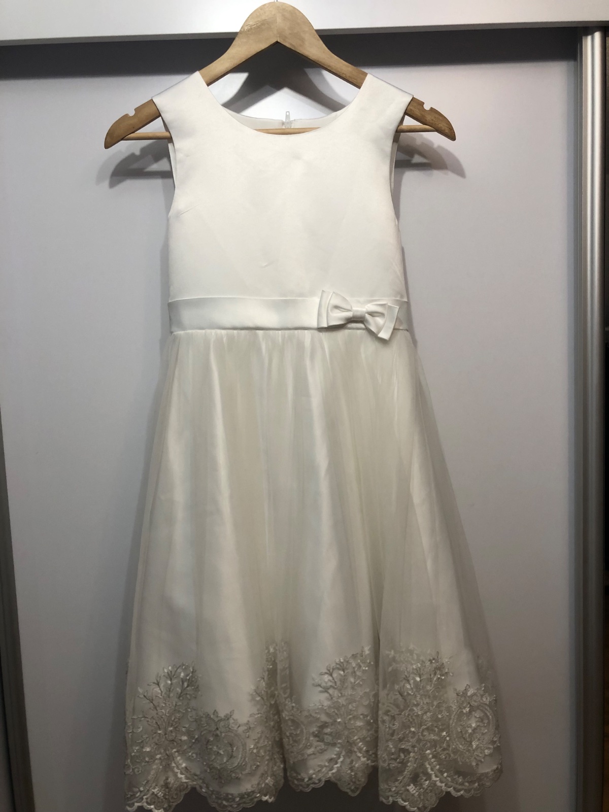 Predám šaty , úplne v Top stave!! Použité raz na 1. sväté prijímanie, dĺžka šiat cca 112, sedia na velkost 146 , spolu so šatami predám blajzer , plus taštičku. Šaty kupované v Rakusku., kvalitne !...