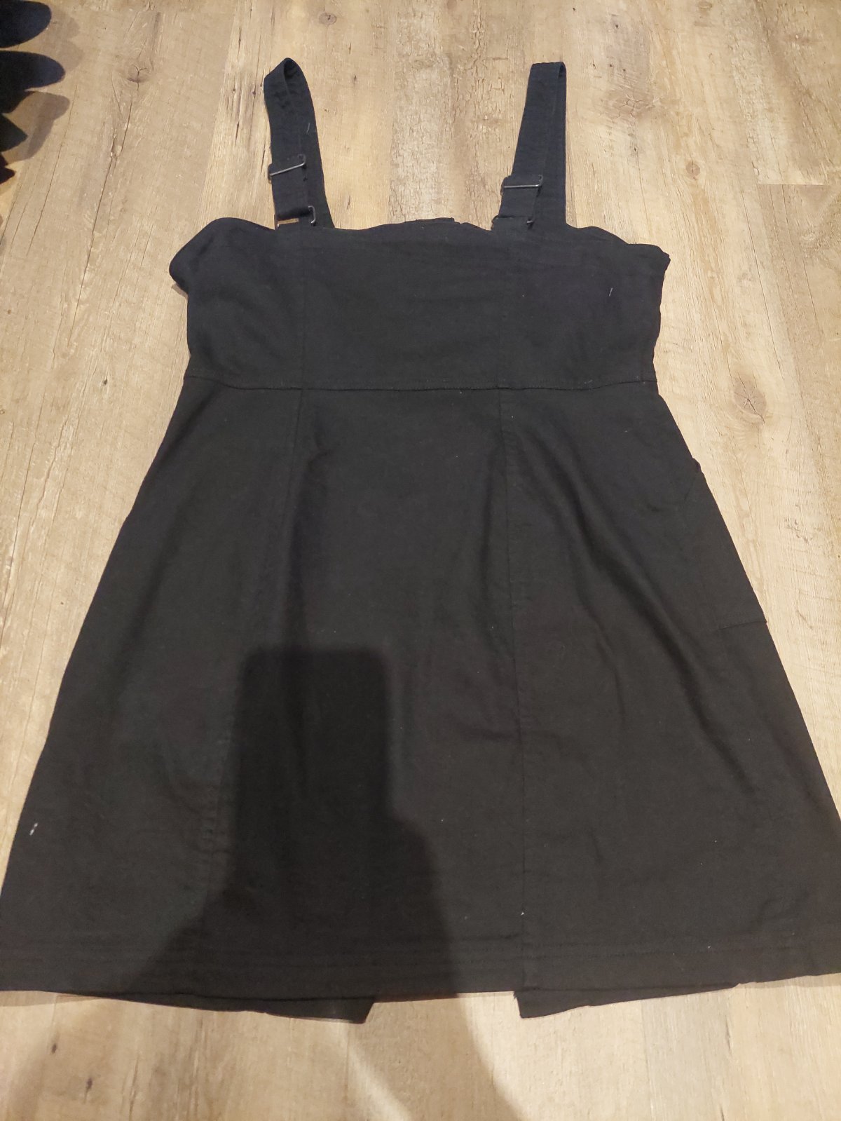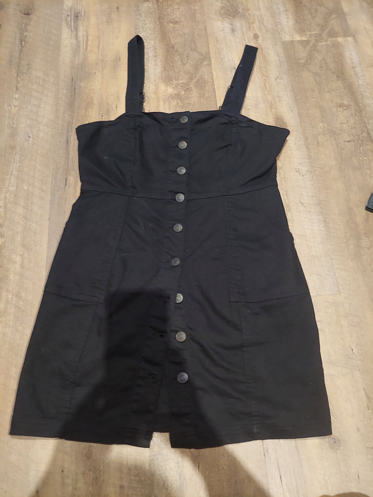 Cierne elasticke riflove saty na traky. Zapinanie na gombicky