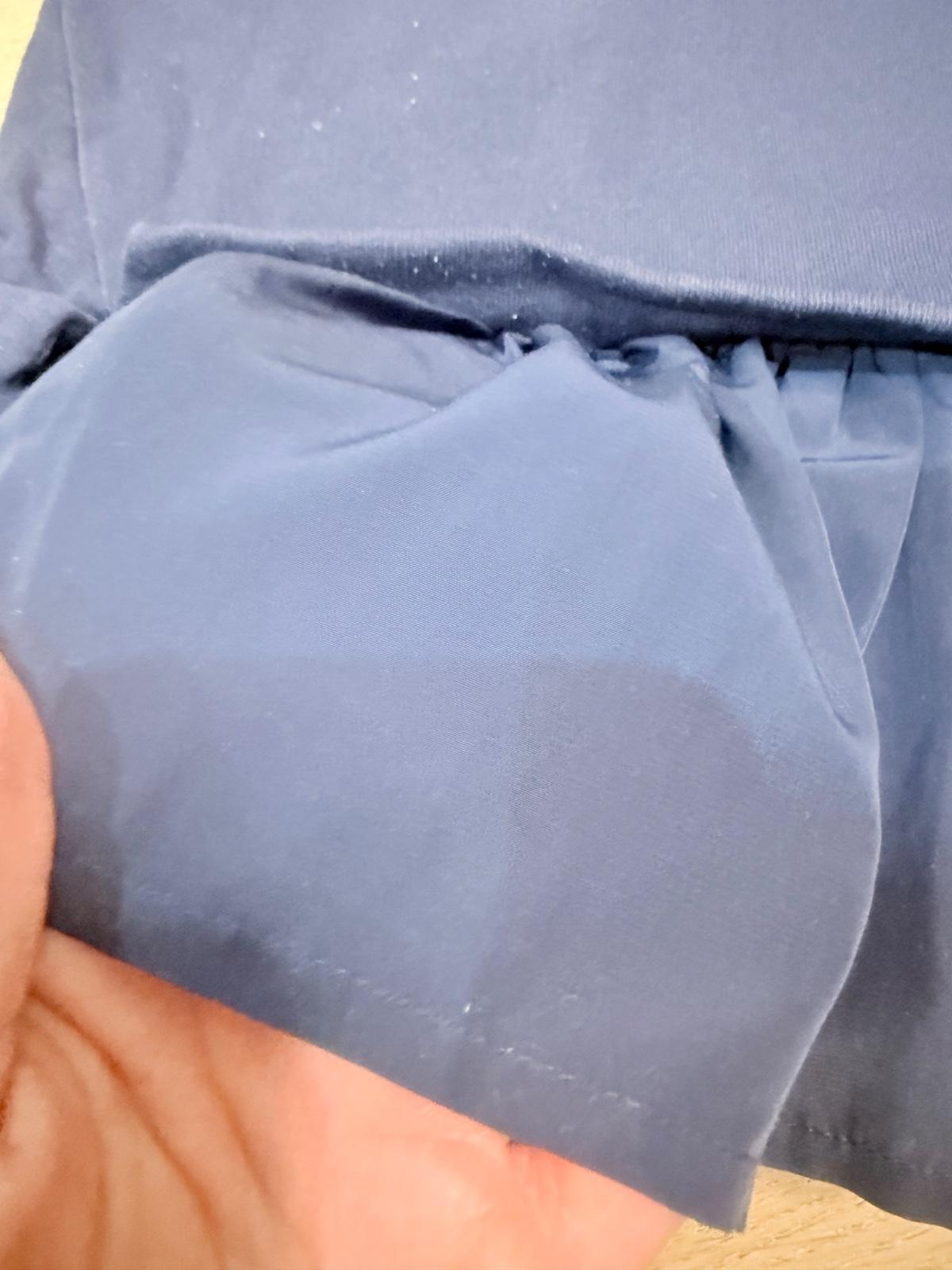 Krásne saty s slávnostnou akoby sukňou, je jemne lesklá a hebka na dotyk, bez akýchkoľvek poškodení, farba je tmavomodrá, nešlo mi lepšie odfotiť