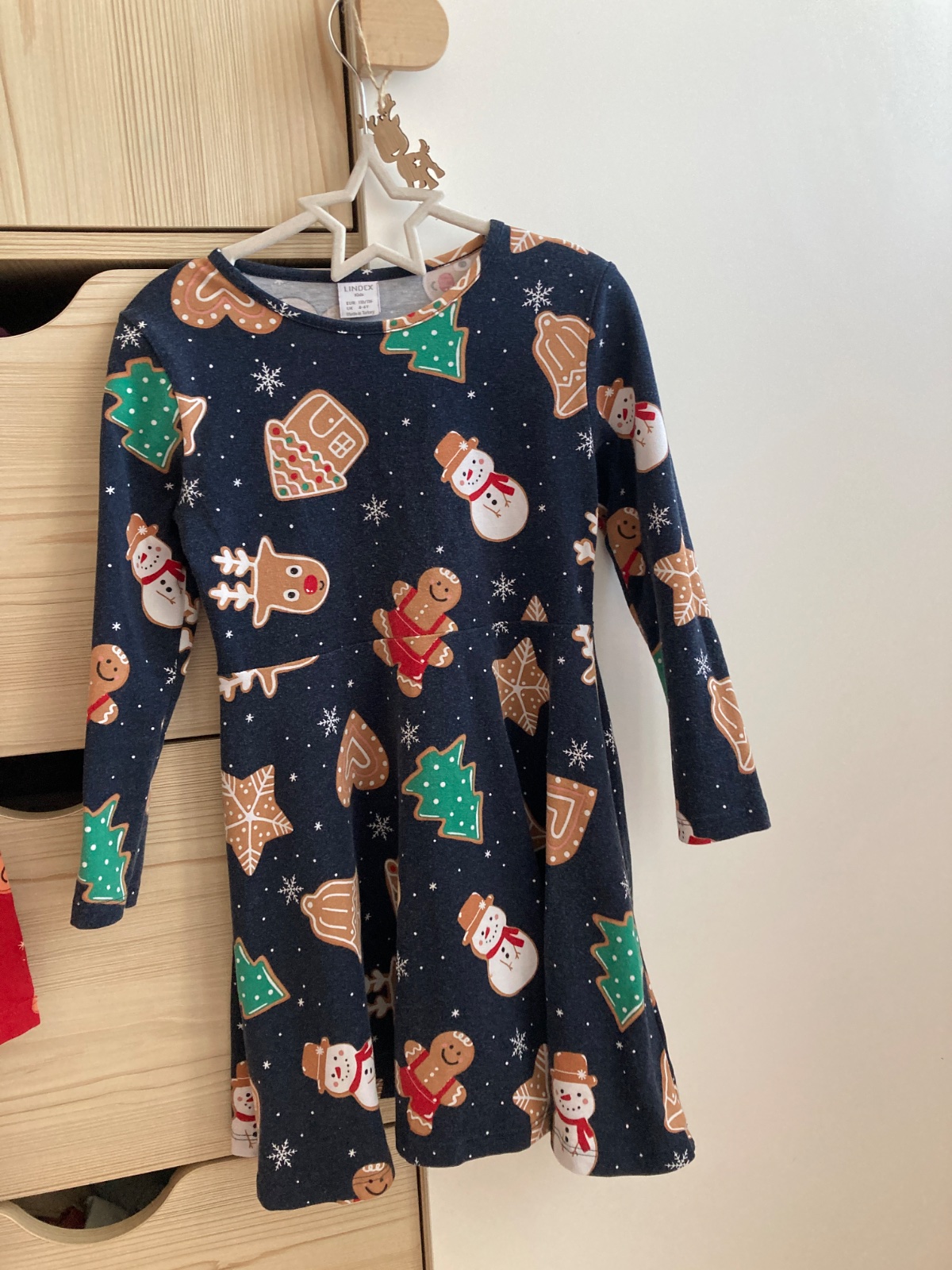 Ponukam na predaj tuniky s vianočnou potlacou Lindex. Veľkost na visacke 116, sedia na 116 a aj menšiu 122. Tmavo modrá je v stave bez poškodenia. Na červenej sa bohužiaľ pri dolnom leme sukne urobila mini dierka, prasklo vlakno, vid. foto, snažila som sa to zašiť najlepšie ako som vedela. Predaj samostatne alebo spolu. Cena