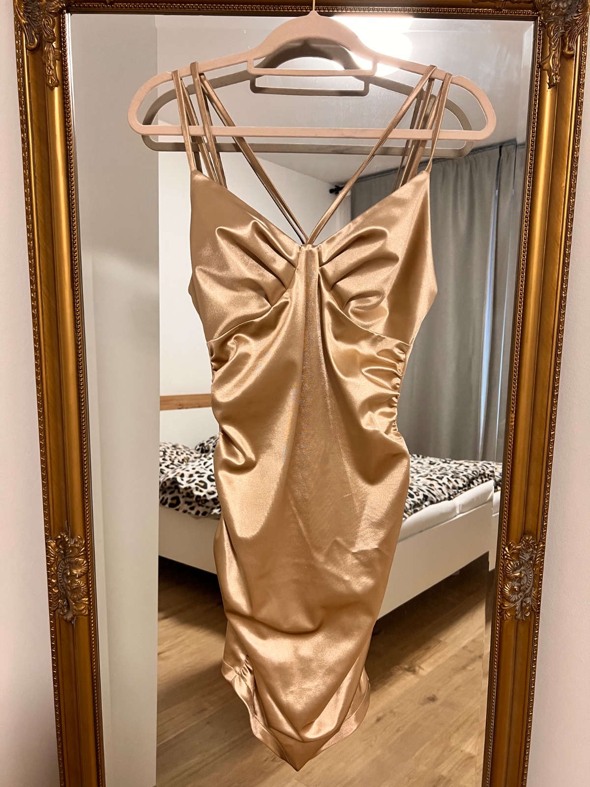 1xoblecene, béžovou-zlata farba, prsia vystužené Filtre sa dajú meniť na zlatu alebo béžovou farbu, pekny strih, super na novoročný večierok Bez postovneho