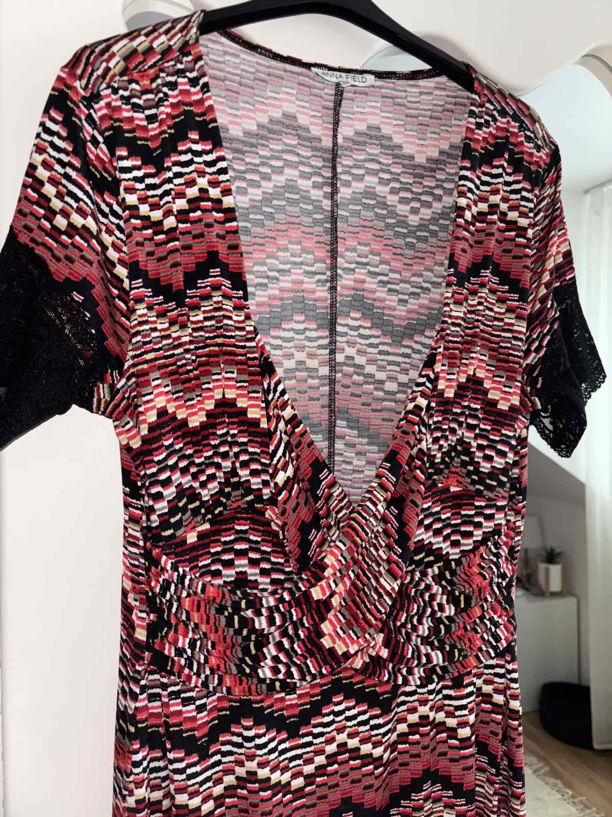 Výborný stav, pružné, ukončenie čiernou čipkou, veľkosť 42, šírka pod pazuchami cca 52 cm, dĺžka 100 cm
