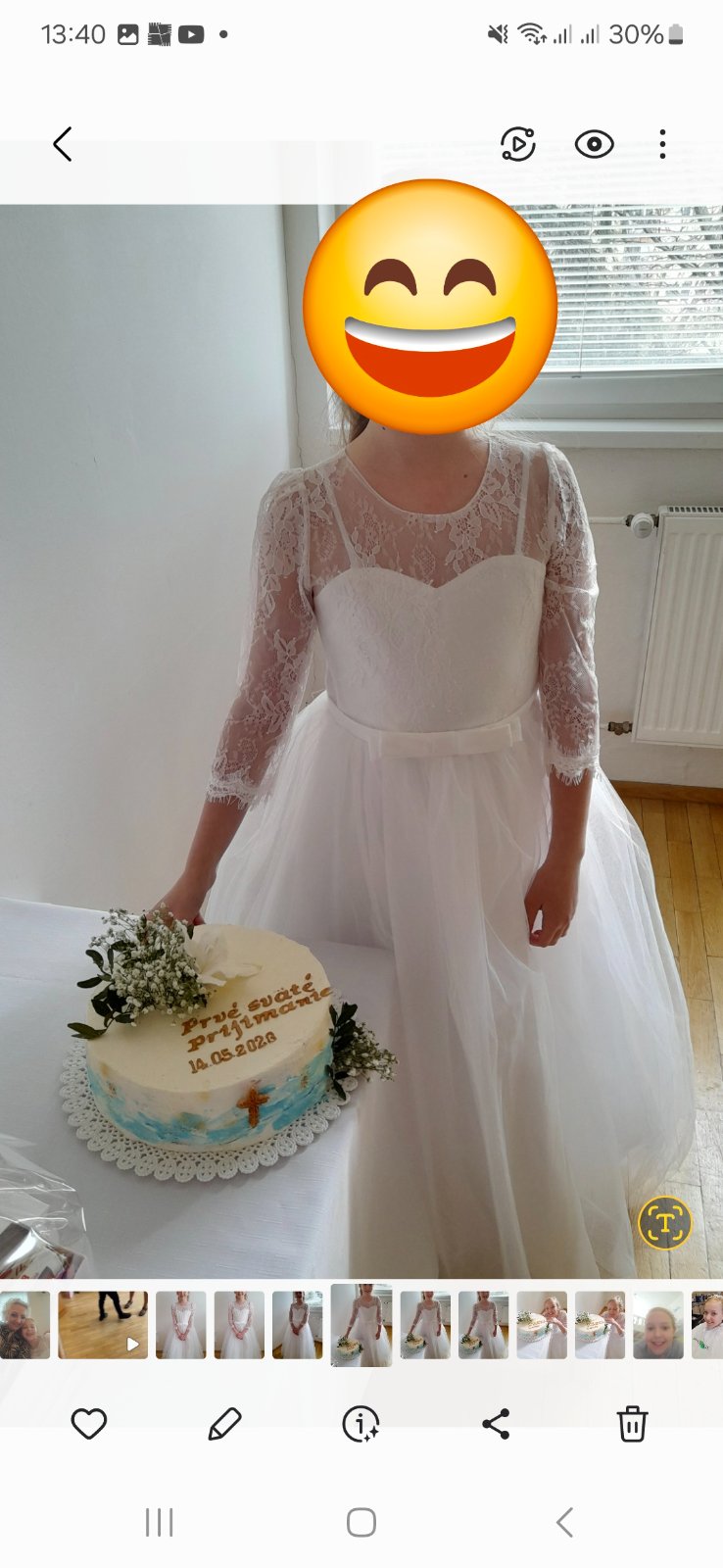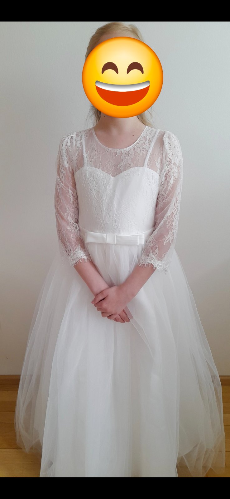 Kraaasne šaty na prvé sväté prijimanie, sú ako nove, raz použité, minulý rok. Spolu so spodničkou, 3/4 bolerkom a korunkou na vlasy bude Vaša dcérka ako skutočná princezna. Cena za komplet šaty, spodnička, bbolerkoa korunka 50Eur + poštovne. V ponuke mam aj lodicky na podpätku, veľkosť 37.