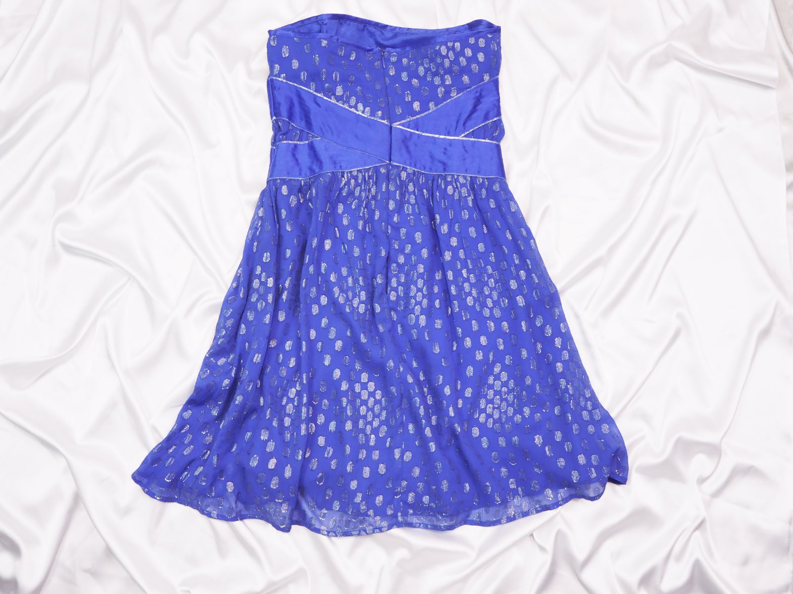 Kvalitné hodvábne šaty modrej farby s nádychom do fialova, podšité, vzadu zips, super stav.