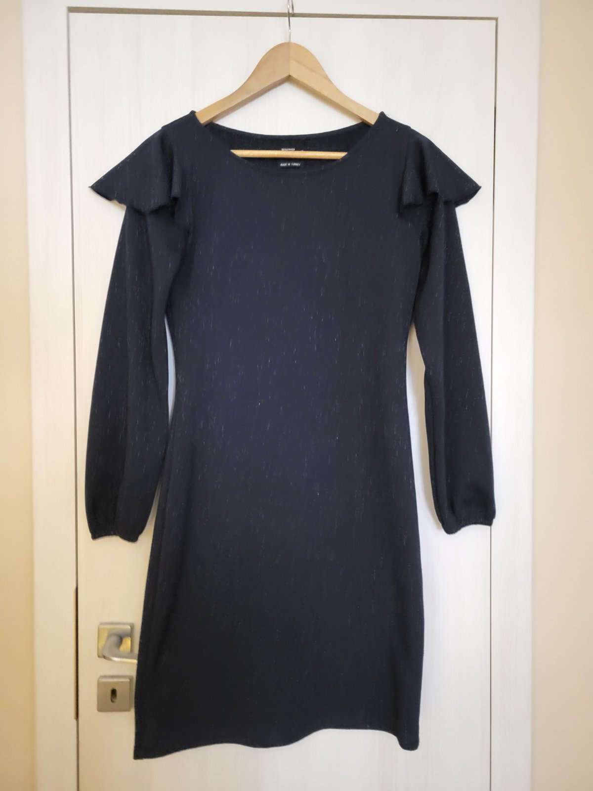 Krasne saty reserved velkost M tmavomodre sa maju v sebe trblietky nosene ale v super stave dlzka cca 91 -91,5 cm