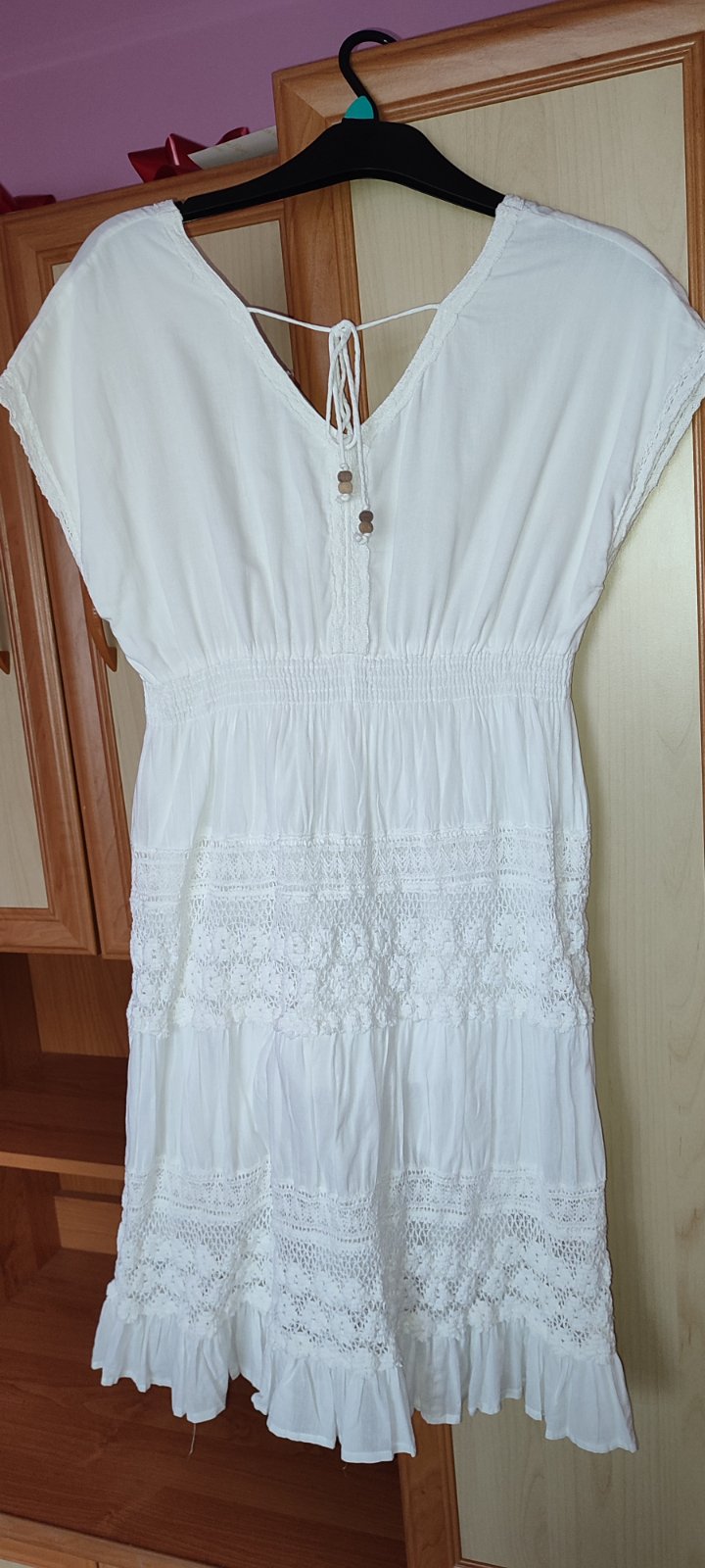 Pekne biele saty bez poskodenia , hrudnik 48, dlzka predny diel 92, zadny diel 98