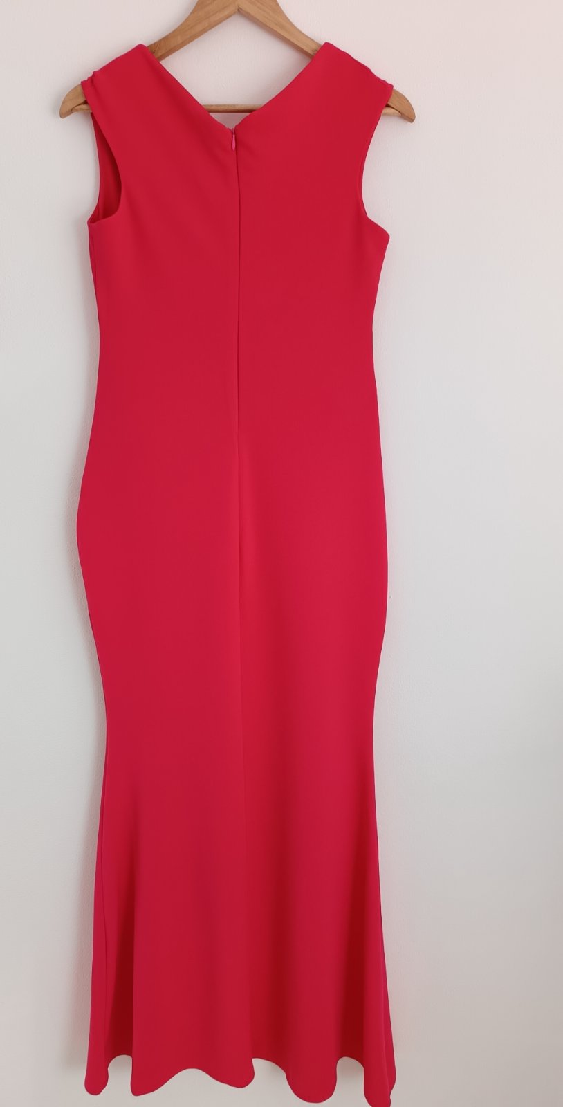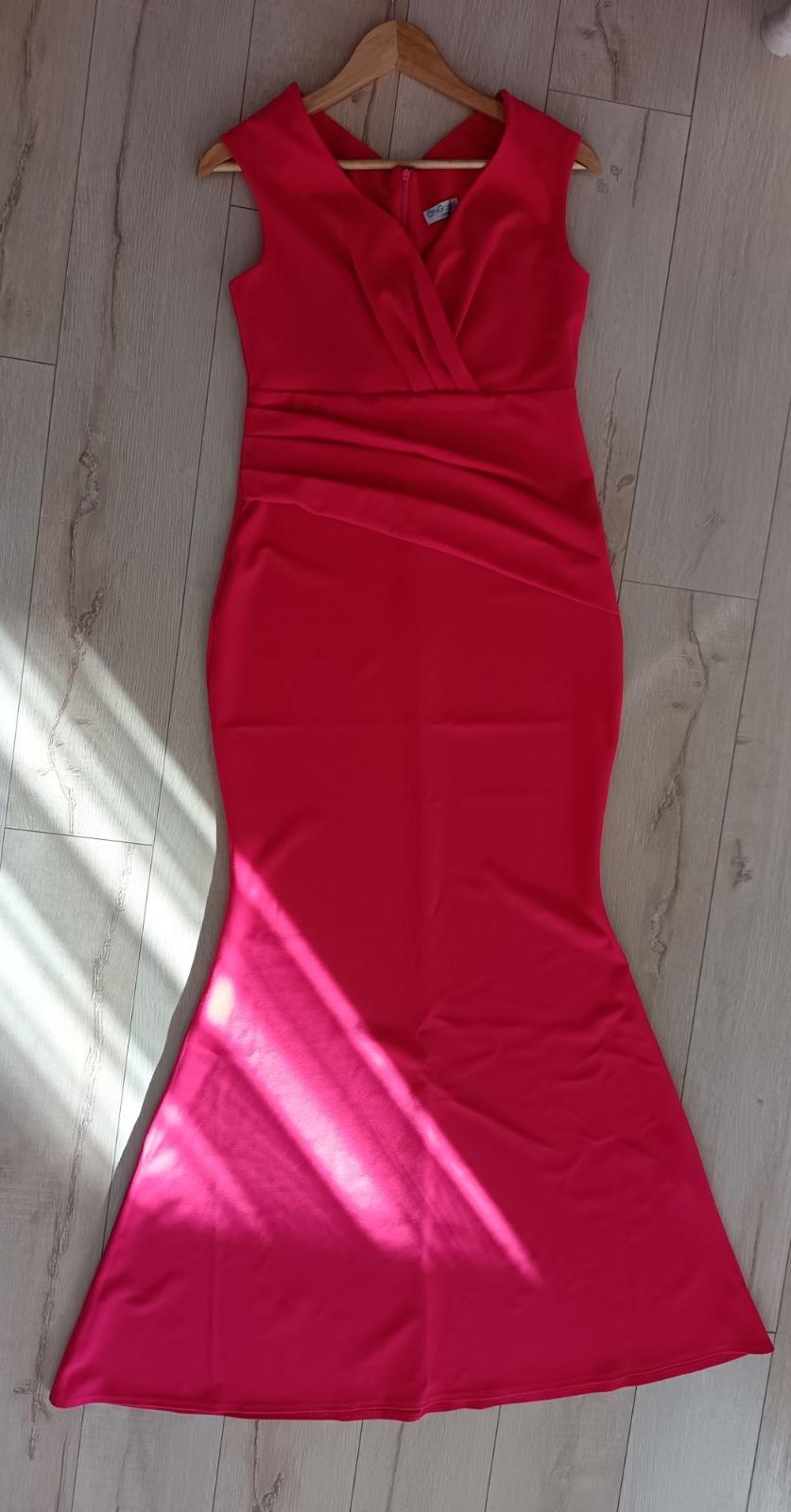 Dlhé, spoločenské šaty, červeno-korálovej farby(fotka skresľuje, sú svetlejšie ), zapínanie zo zadu na zips, elastické, takže sa prispôsobia, na bruchu nazbierané, spodná časť mierne rozšírená do A, bez poškodenia, oblečené 1x