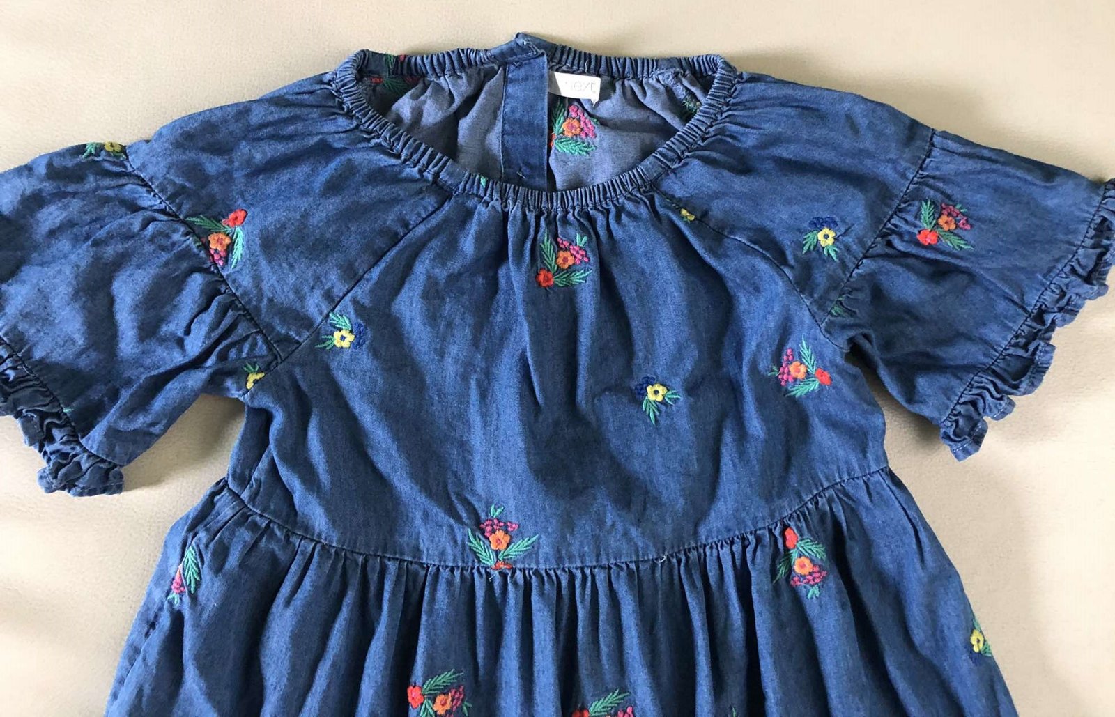 V peknom,malo nosenom stave, bez poskodenia. 100% bavlna, chrbat na gombiky. Mäkky, príjemny material. Zdobeny s vyšívanymi kvietkami.