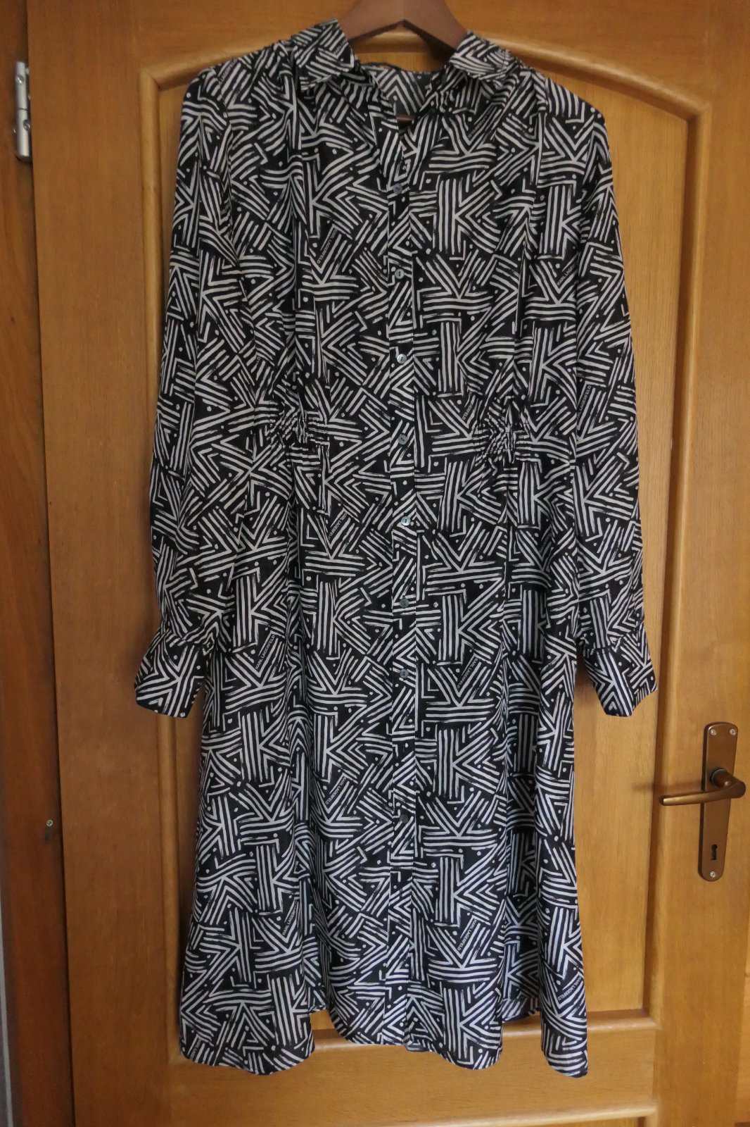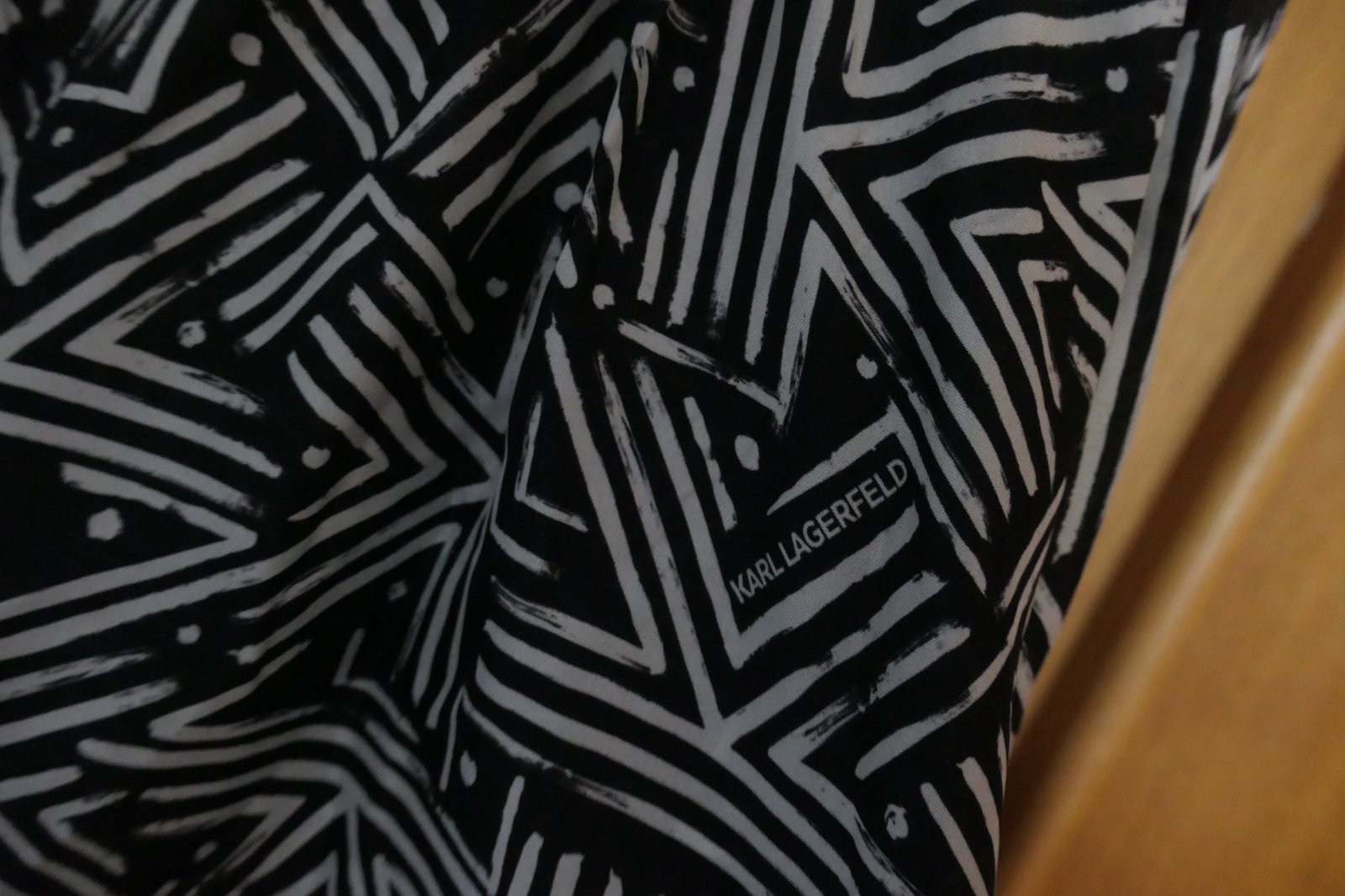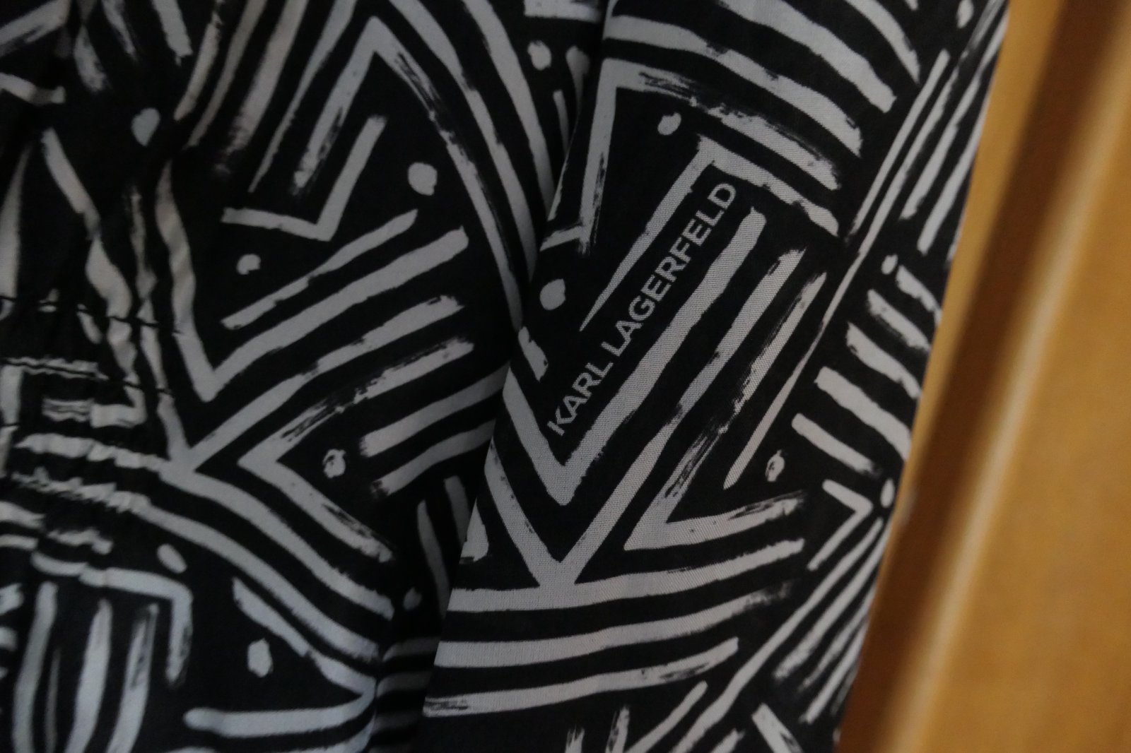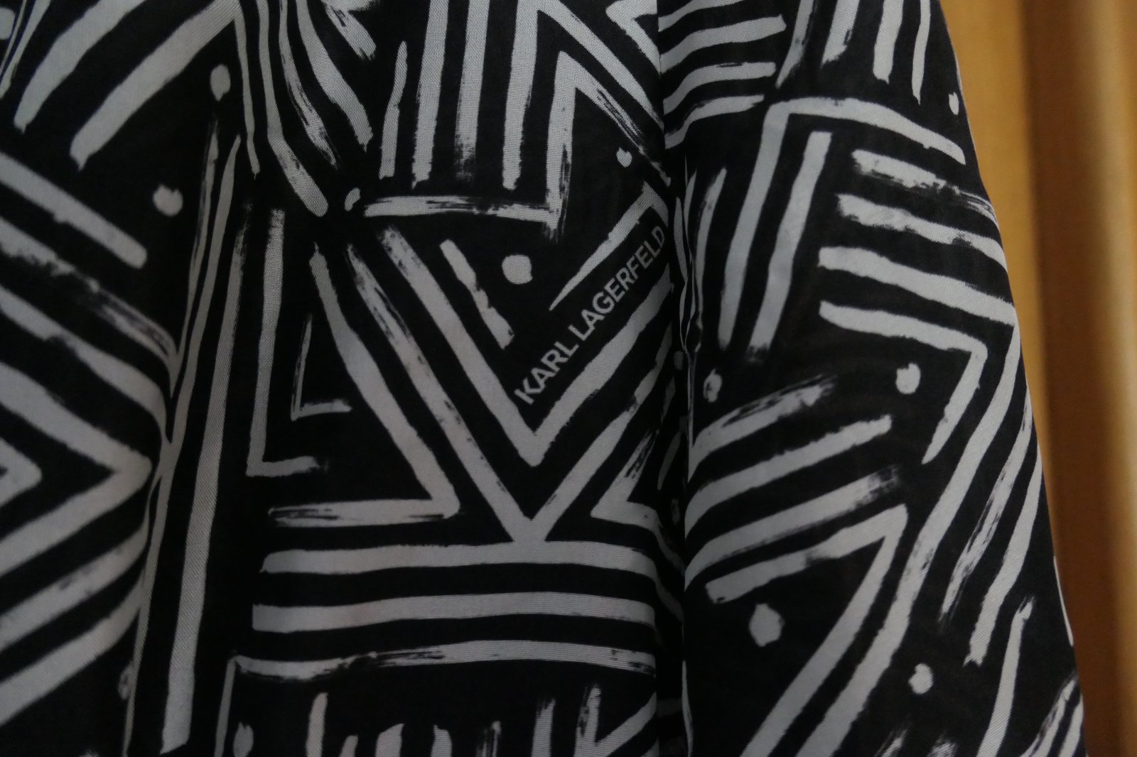 krasne, satenove, luxusne damske saty original Karl Lagerfeld, oblecene cca 2-3 krat, top stav, po celej ploche Kcka a napisy Karl Lagerfeld, hebunke, vzdusne, max. pohodlne, vzadu v pase v strede a vpredu gumena nariasena pruzna gumicka, dva bocne vrecka, PC cez 400 eur, nadherne a excluzivne.