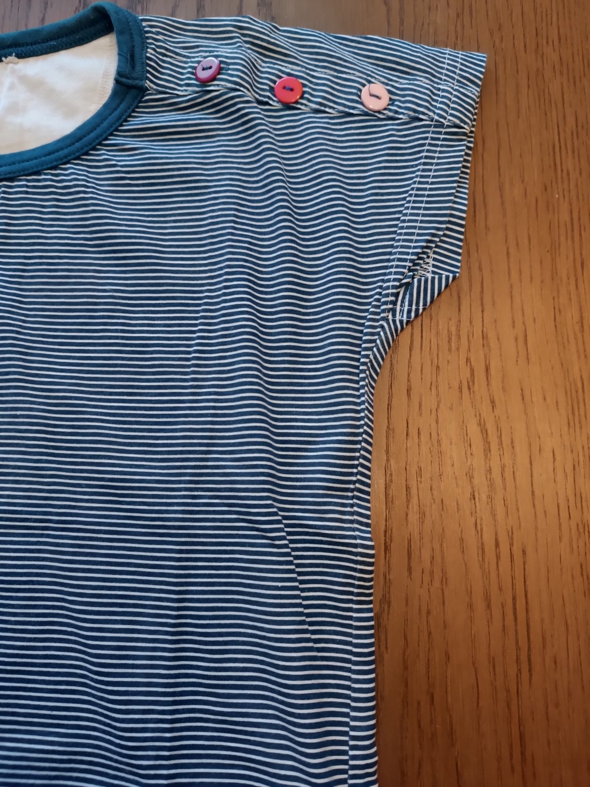 - šaty pruhované 146/153, LOAP City Šport. Dĺžka od ramena pri krku cca 68cm, šírka pod pazuchami cca 42cmx2. Cena 8,50eur.