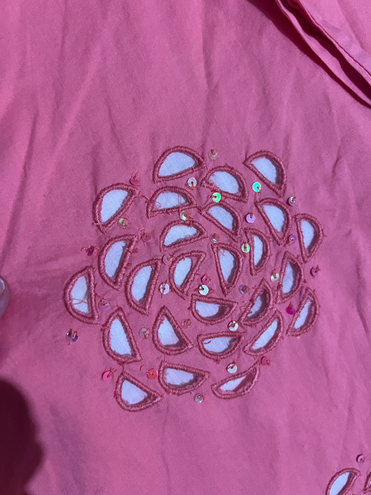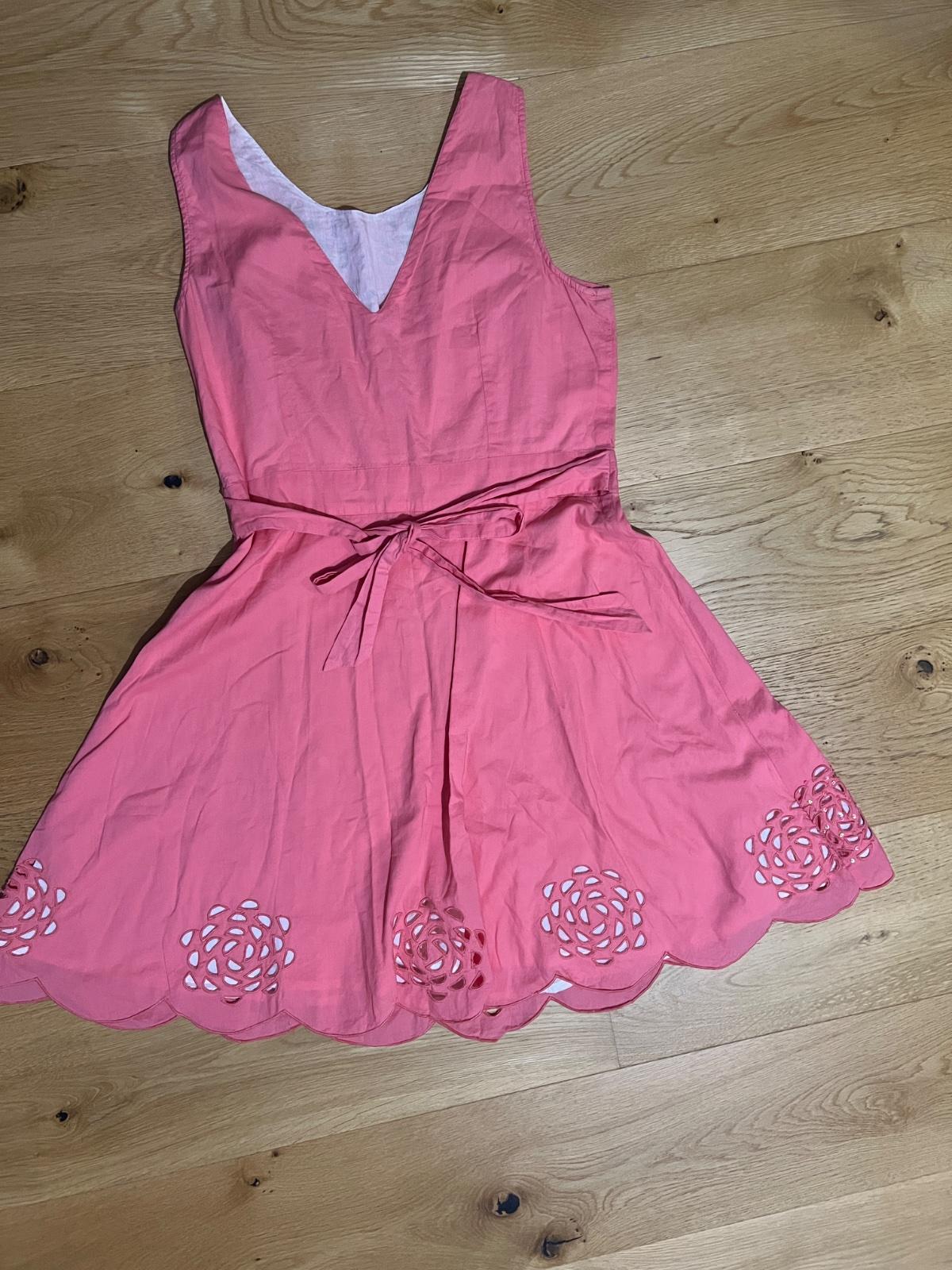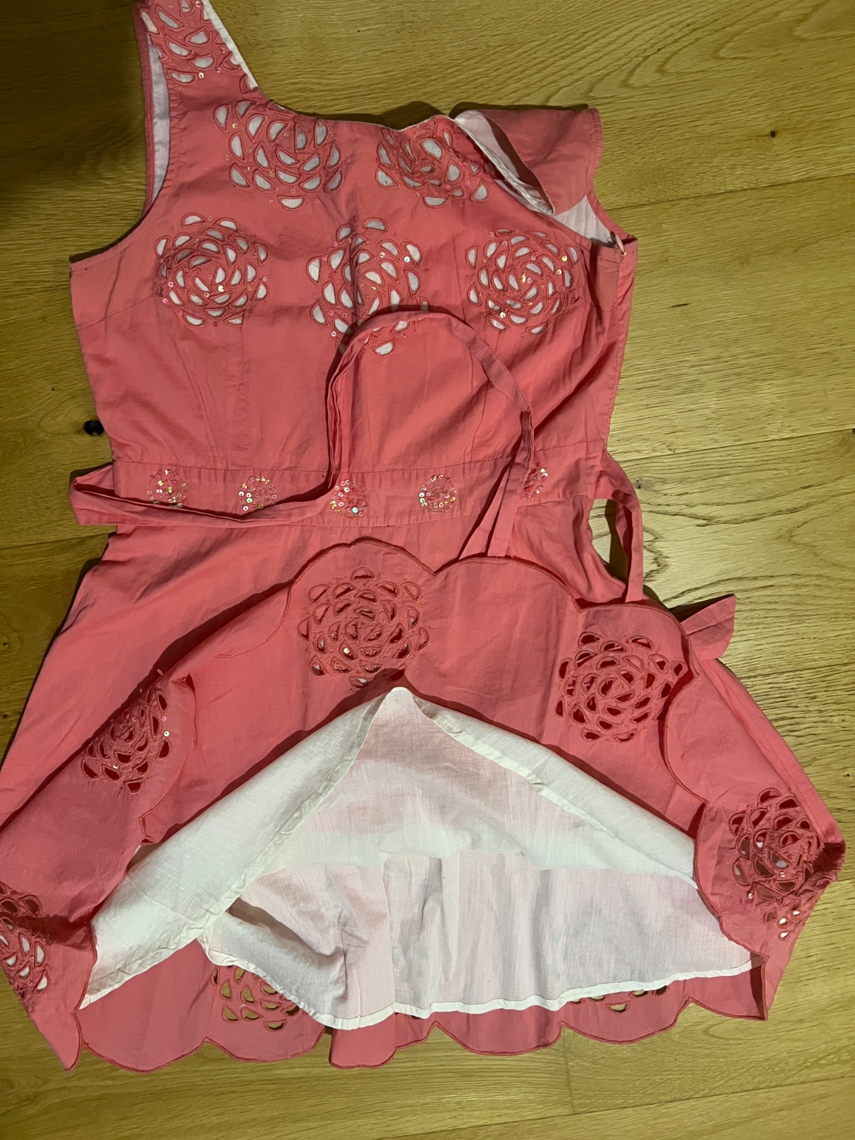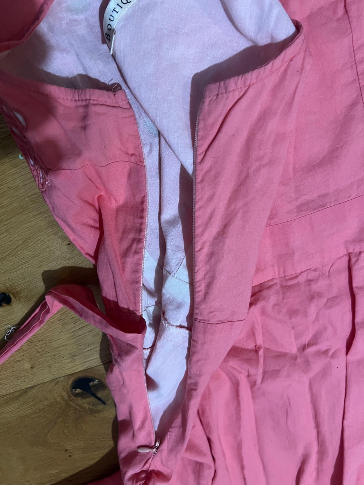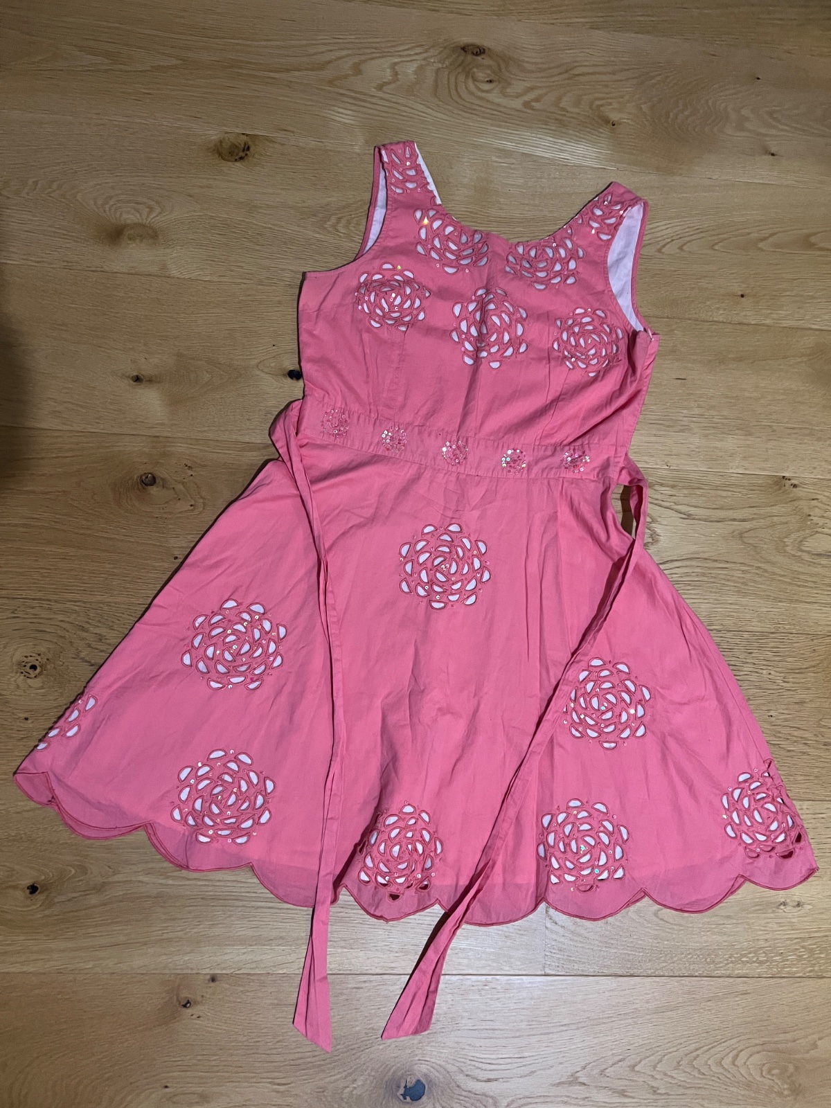 Predam bavlnene akoby z jemneho platna saty, podsite, skryty plne funkcny zips, predne kvietky maju flitre. Su vo velmi dobrom stave.