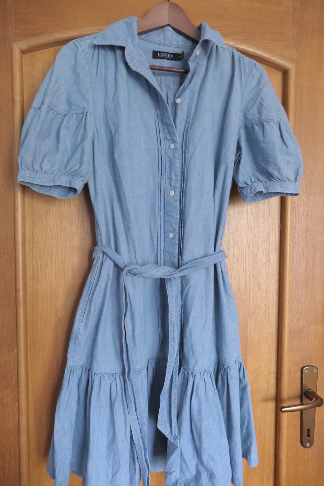 original Ralph Lauren krasne bavlnene hebunke kvalitne saty vzhladom rifloviny, velkost 6, sedia na Mko, dva bocne vrecka, nariasene mierne rukavy, krasne site, super sedia, rozhodne odporucam, nadherny kusok, PC vysoka