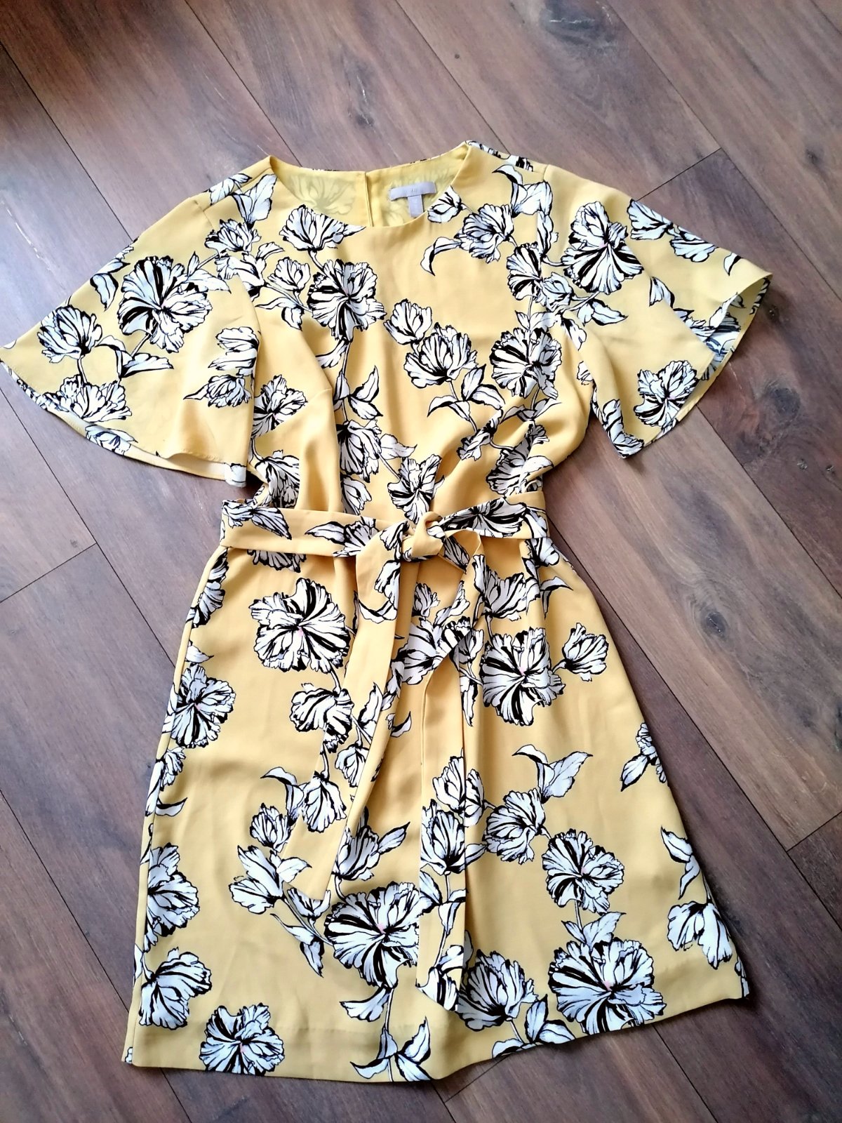 Krásne ľahké šaty, žltá nie je až taká sýta/jasná, skôr do takej horcicovej. Máličko nosené, top stav. V páse majú opasok, pekne formuju postavu. Maju aj spodničku. Dĺžka 89 cm, šírka v prsiach 46 cm.