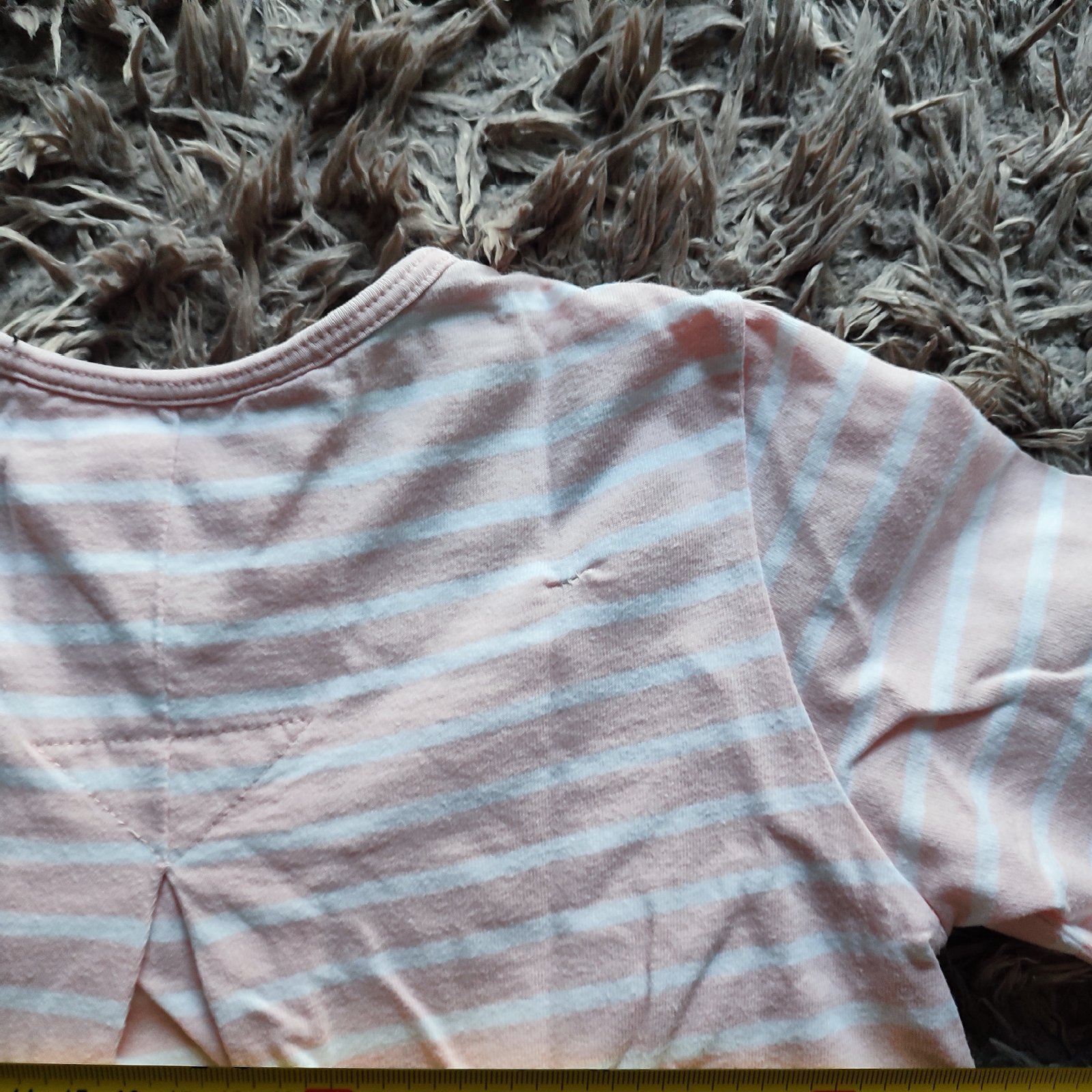 Pekný nosený stav, ale vzadu zašitá dierka, foto.