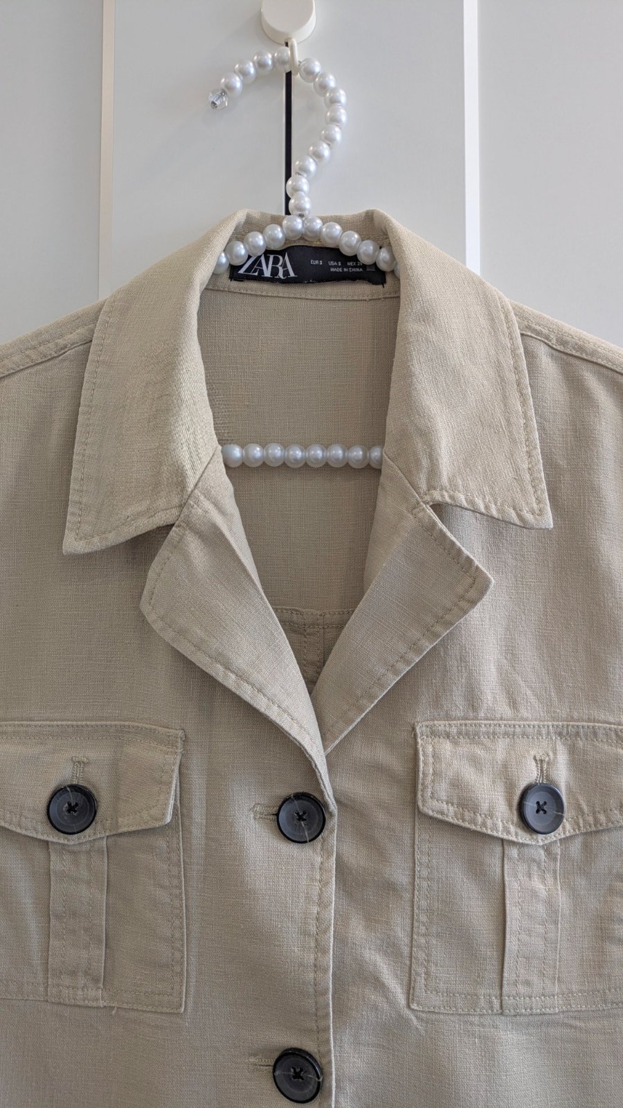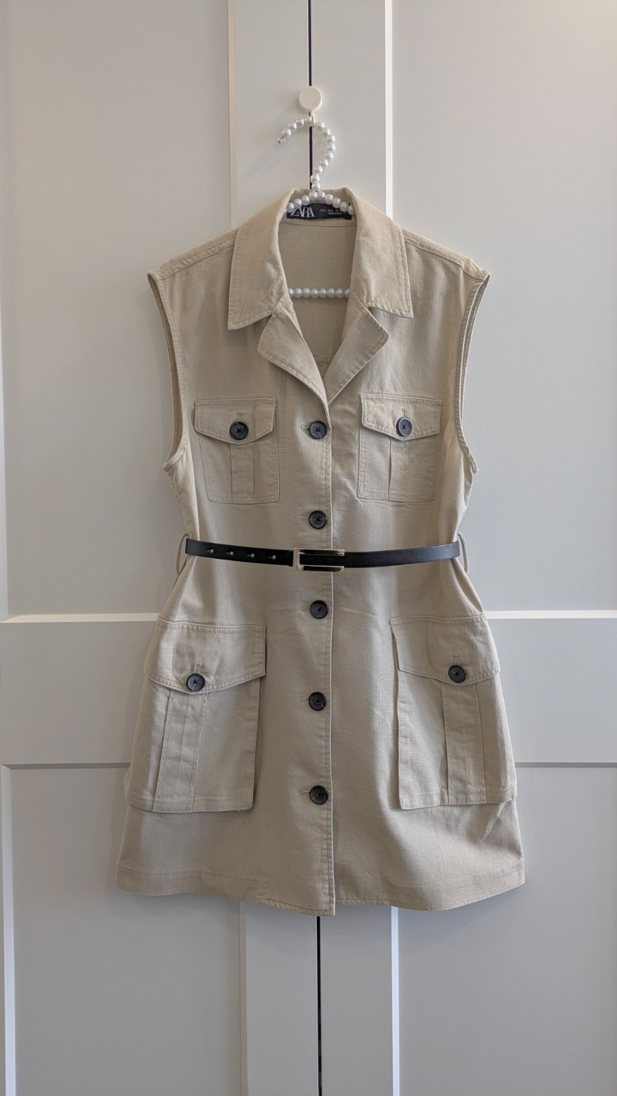 ⚜️ Štýlové béžové košeľové šaty bez rukávov značky Zara v obľúbenom safari štýle. S opaskom pekne tvarujú postavu (predávam bez opasku).