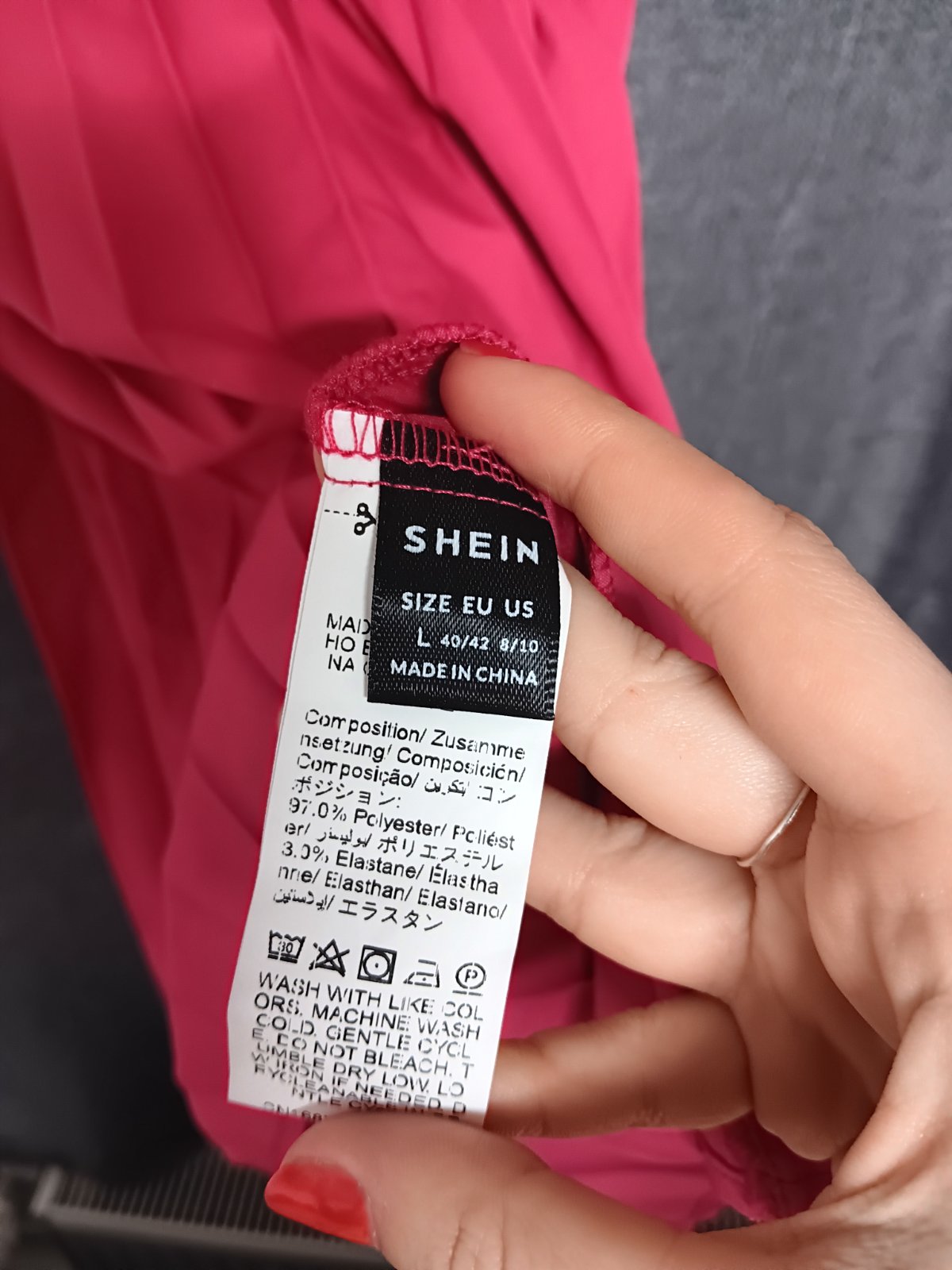 Iba vyskúšané, bez visačky. Veľkosť píše L, ale sadne skôr M. Značka shein.