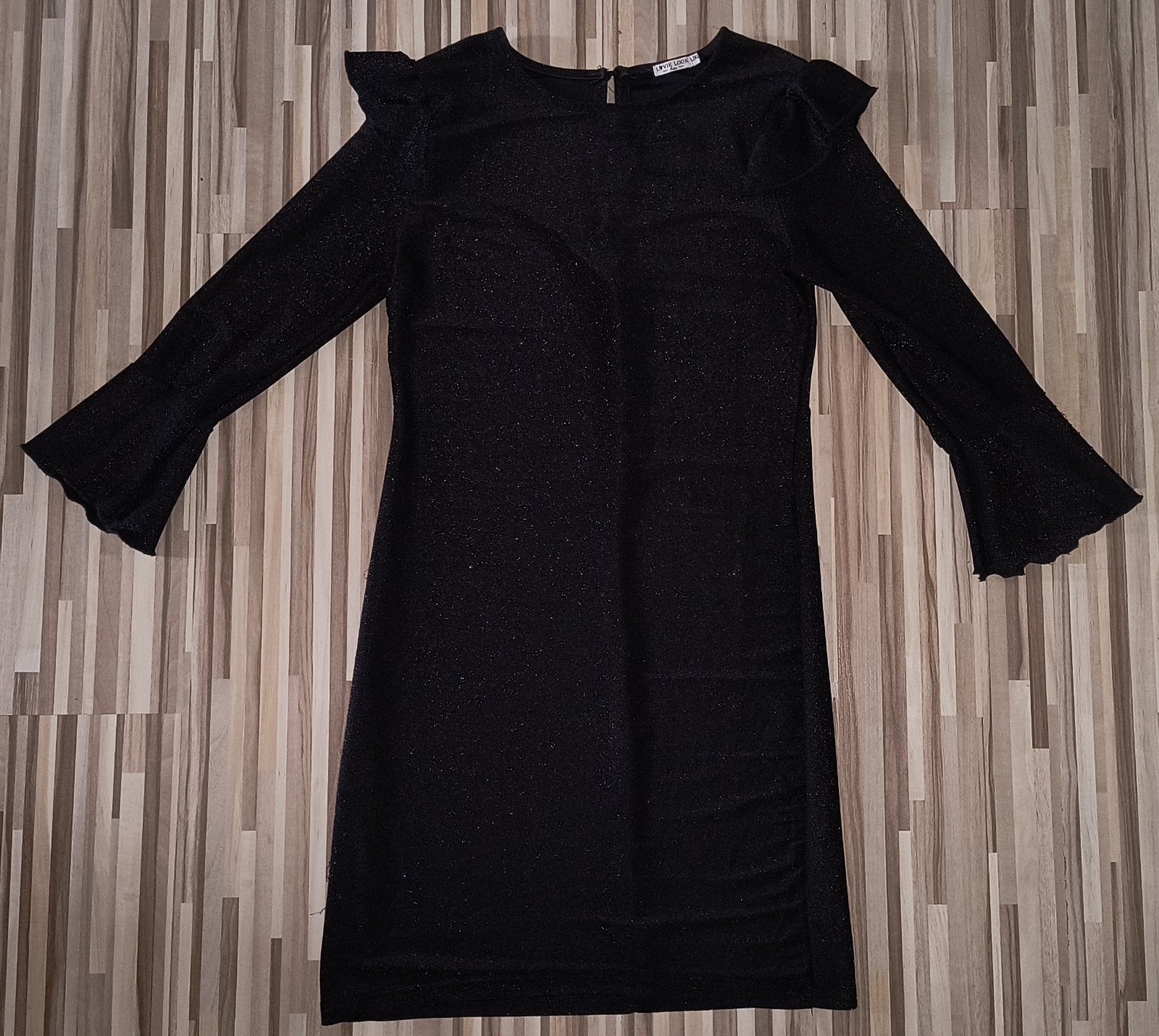 Predám elastické šaty čiernej farby prešívané striebornou nitkou, sú ako nové boli len raz oblečené, veľkosť je písaná L/XL no skôr sa mi zdá že M/L, cena 4 eura