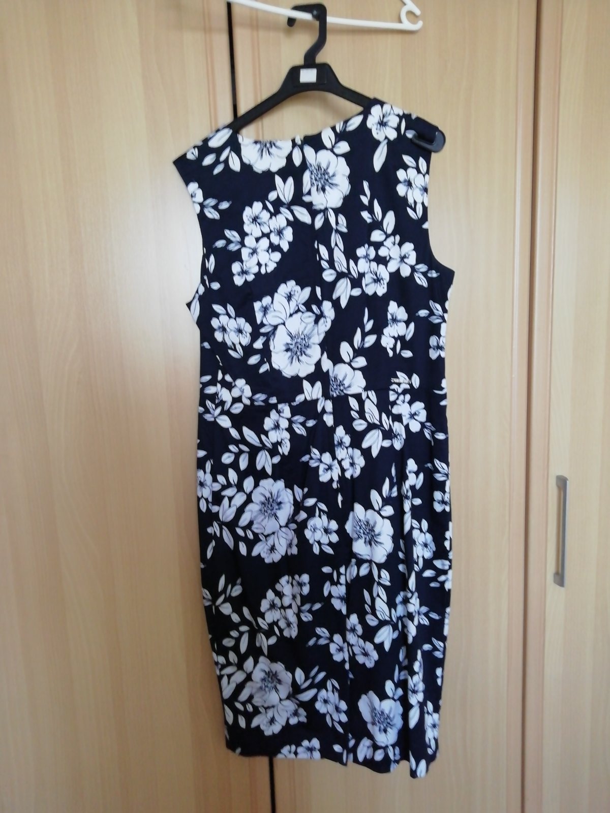 Šaty sú tmavo modre s bielym kvetinovým vzorom, 98%bavlna 2%elastan, vzadu na chrbte je zips