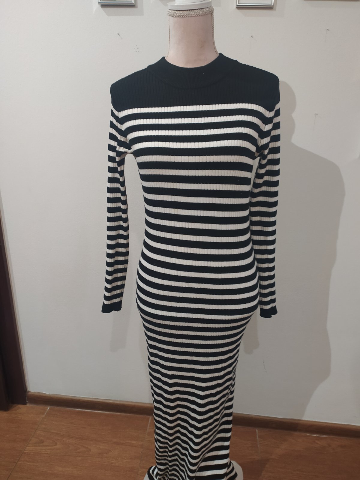 Krásne svetríkove šaty,maxi dĺžky.Oblecene boli asi 2x sú v top stave.Iplet je príjemný ,neskriabe.Vel uvedená L ,skôr sú však na veľ M , elastické