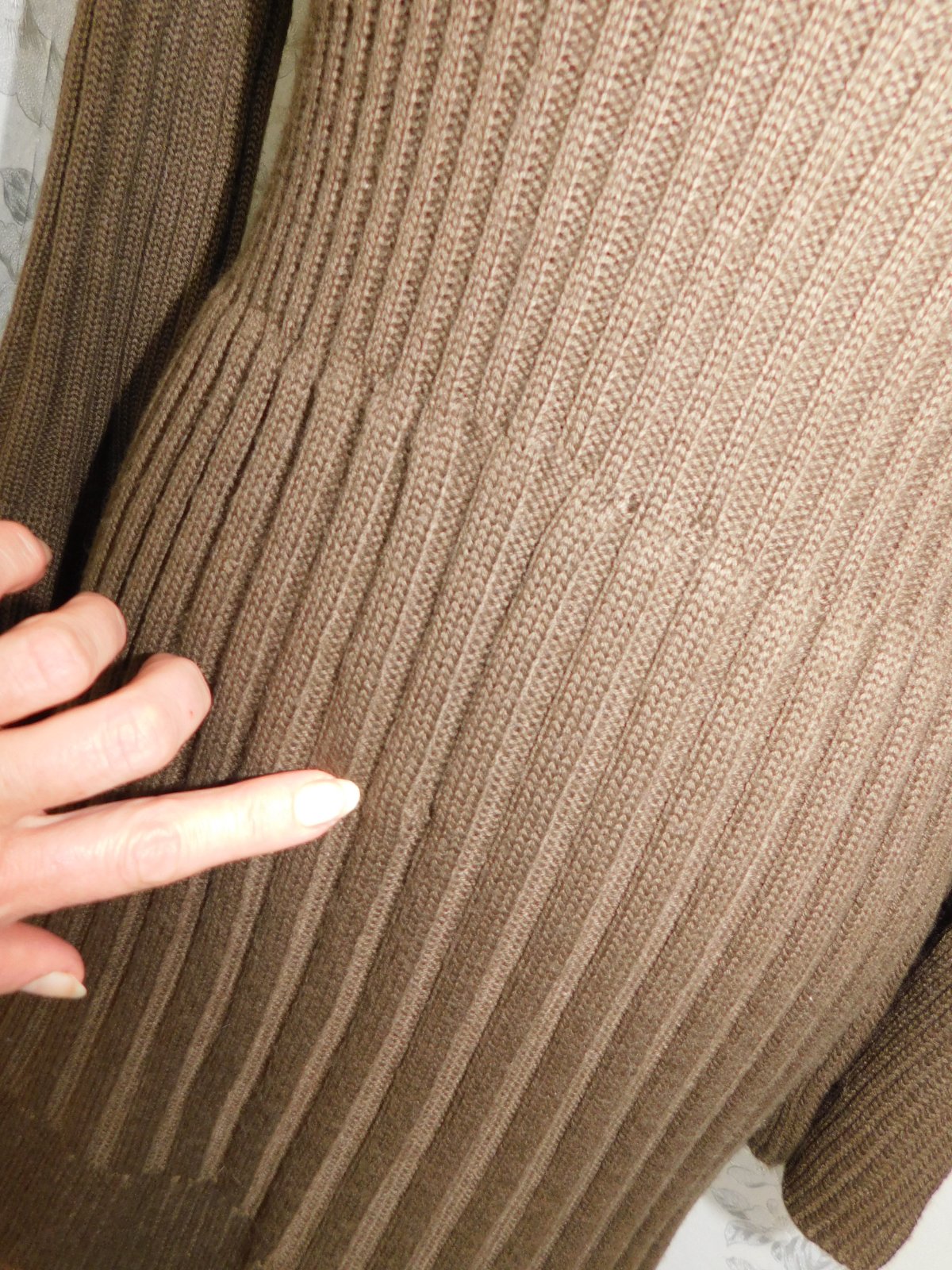 Kvalitne pletene šaty hnedej farby,pleteny mix.vpredu na sukne zašita dieročka,nič hrozne,inak super stav. se37