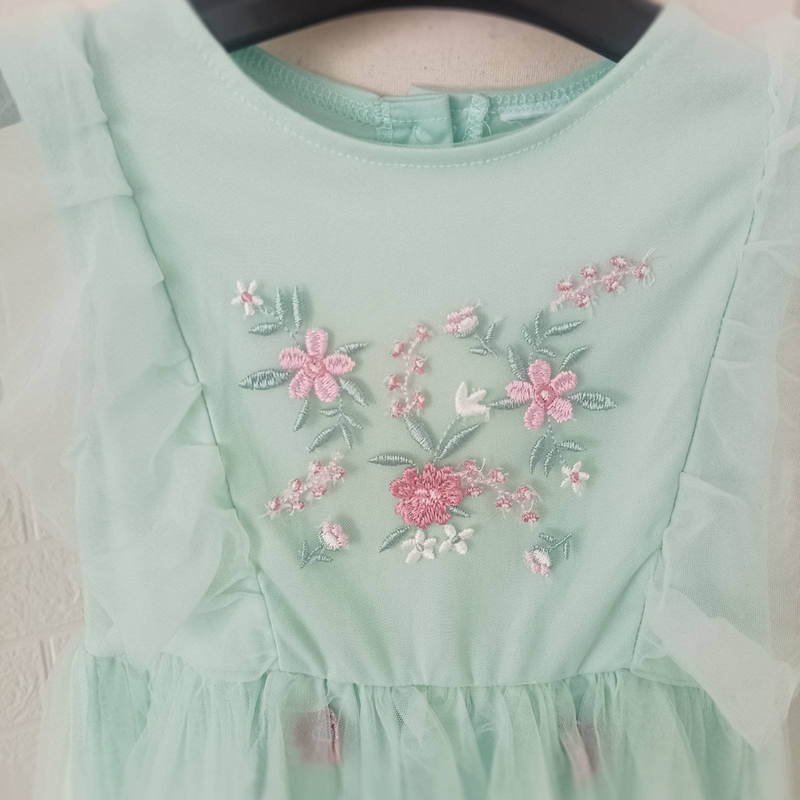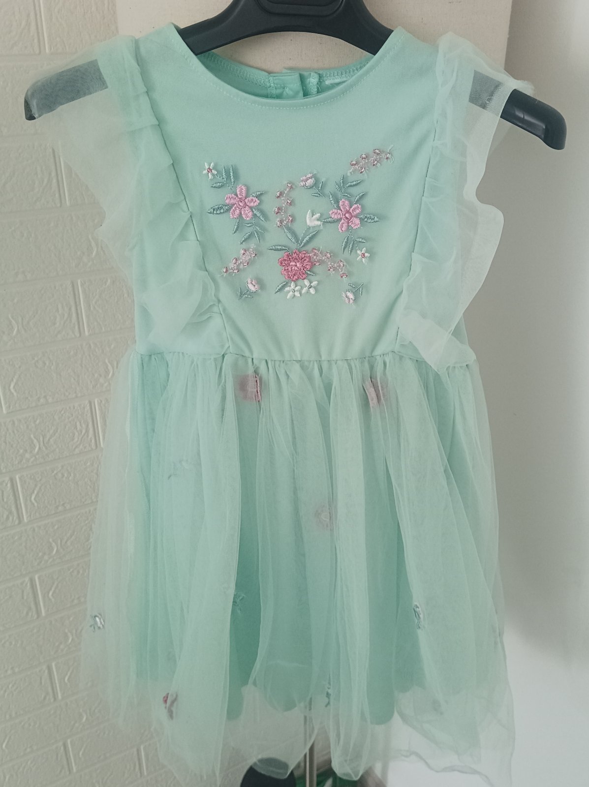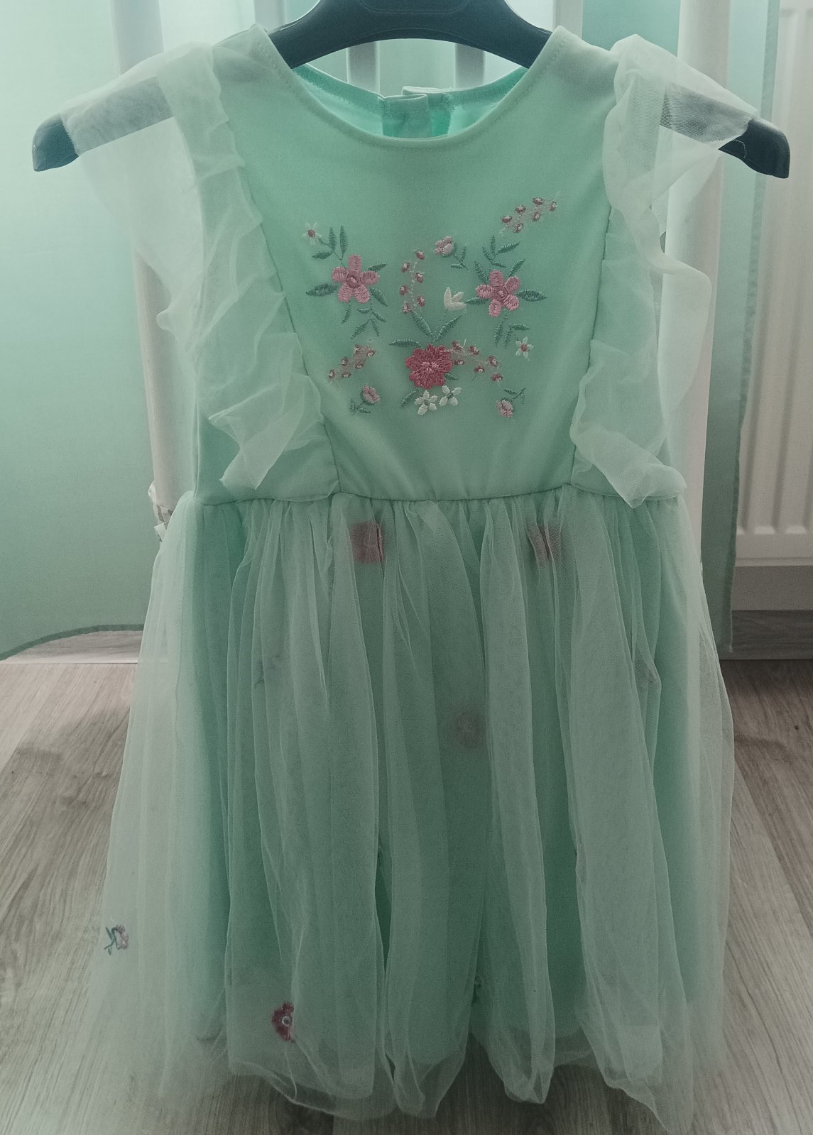 Top stav použité na fotenie,majú mätovú farbu s vyšitými kvietkami veľ.122/128cm