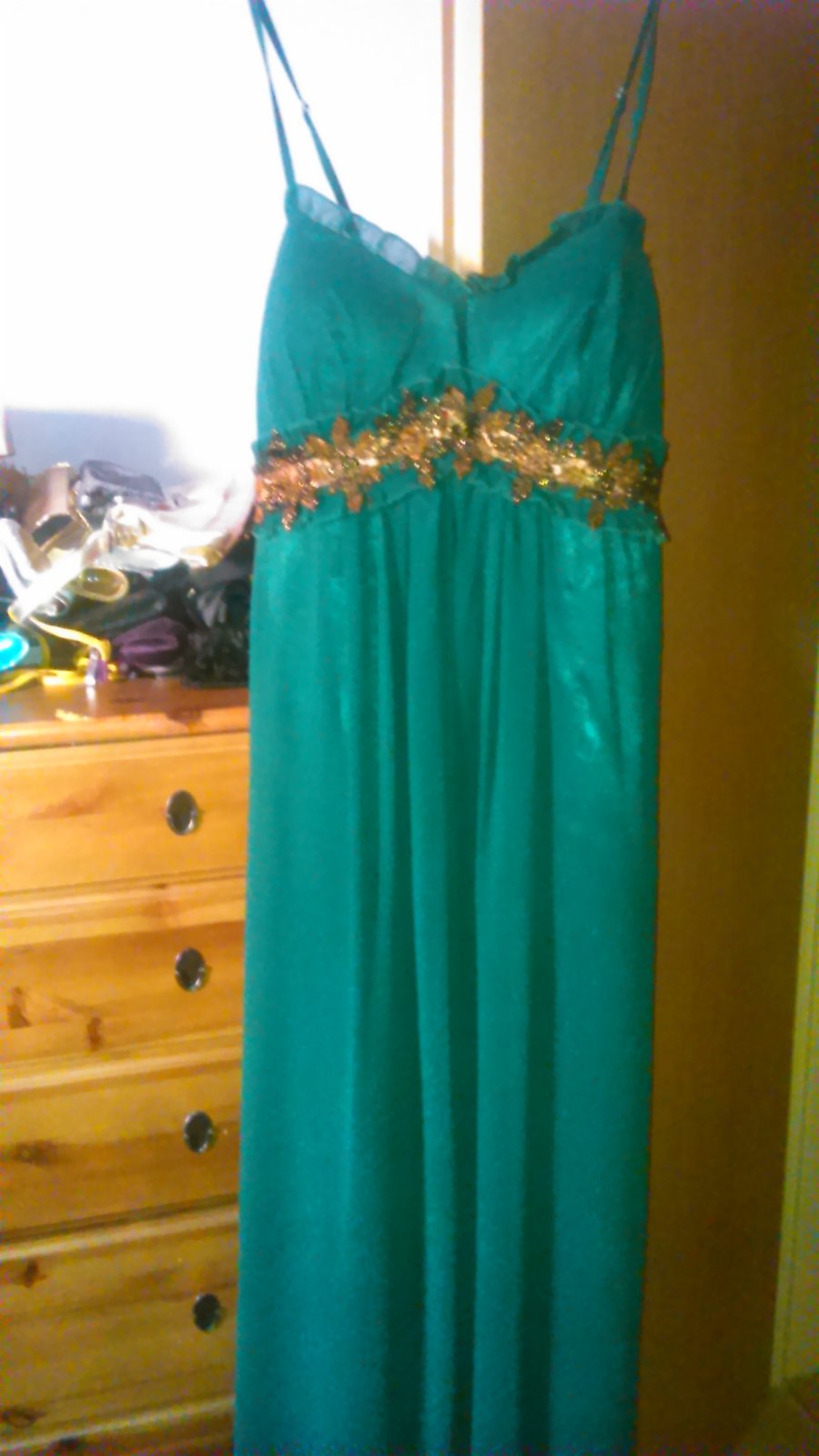 Šaty boli oblečene len raz. Farba je v skutočnosti ovela krajšia smaragdovo zelená.