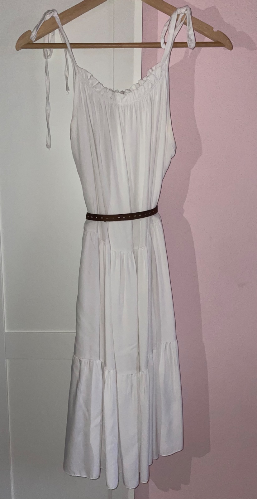 Oblečené len raz, bez chýb. sadnu aj na xs. Velmi lahky materiál, ramienka si viete uviazať podla potreby. Kupene v butiku.