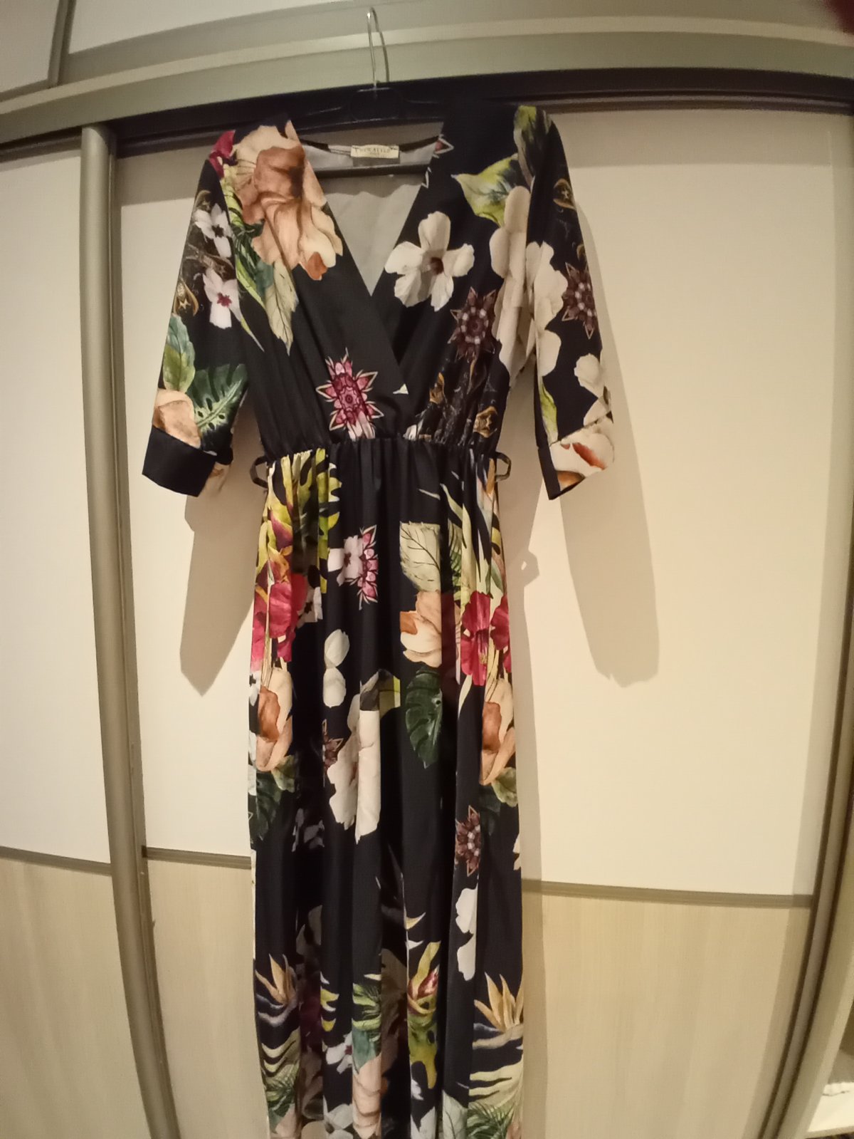 Krasne,vzdusne,skladana sukna,opasok,daju sa nosit aj bez,opticky zostihluju,po vyprati netreba zehlit-100%polyester,raz vzate,dlzka -150 cm,pod prsiami elasticka gumka,rukavy volne,podla mna vhodn...