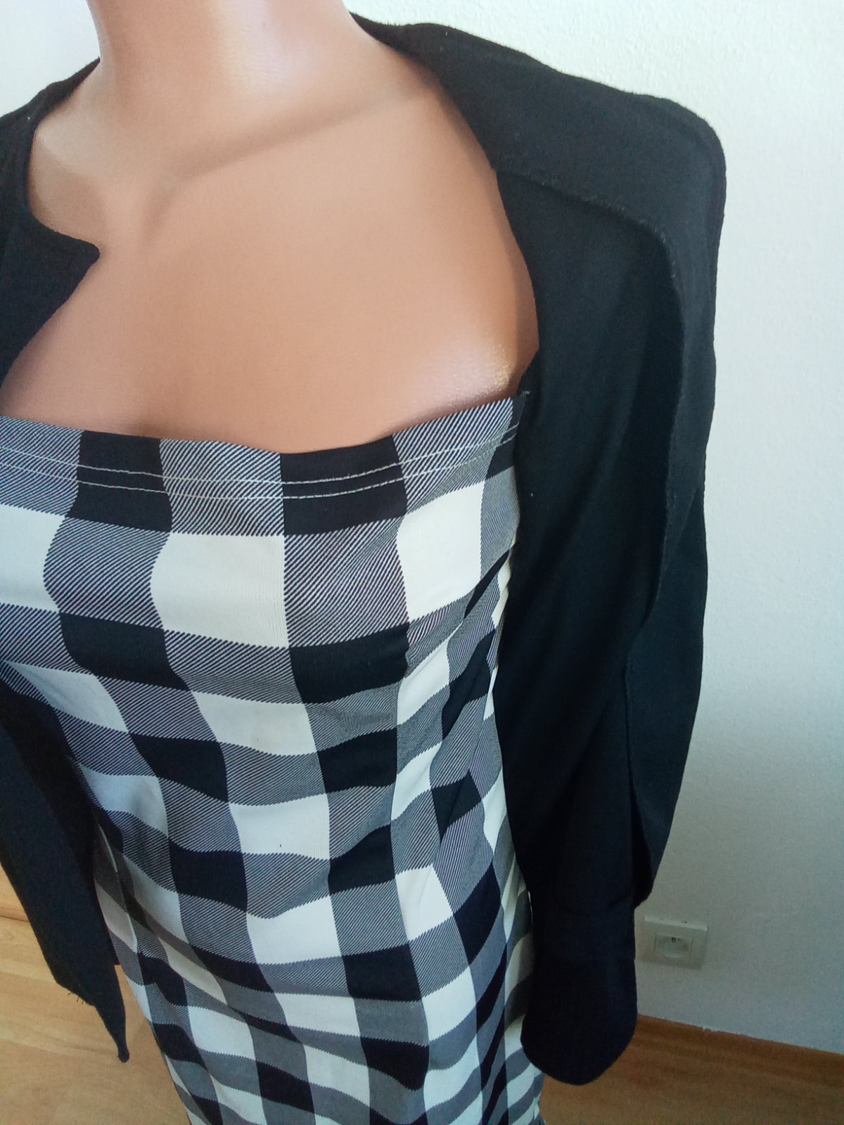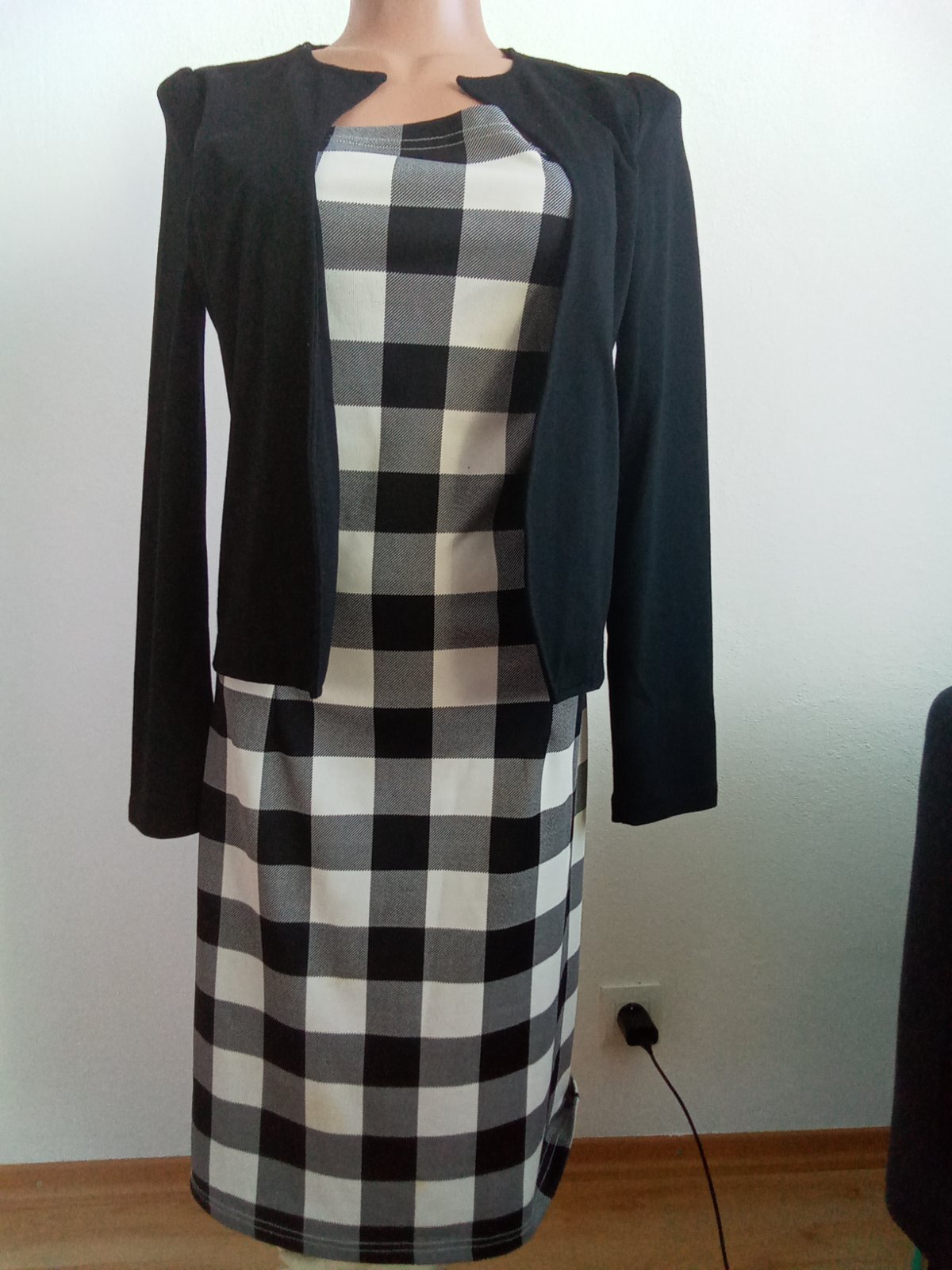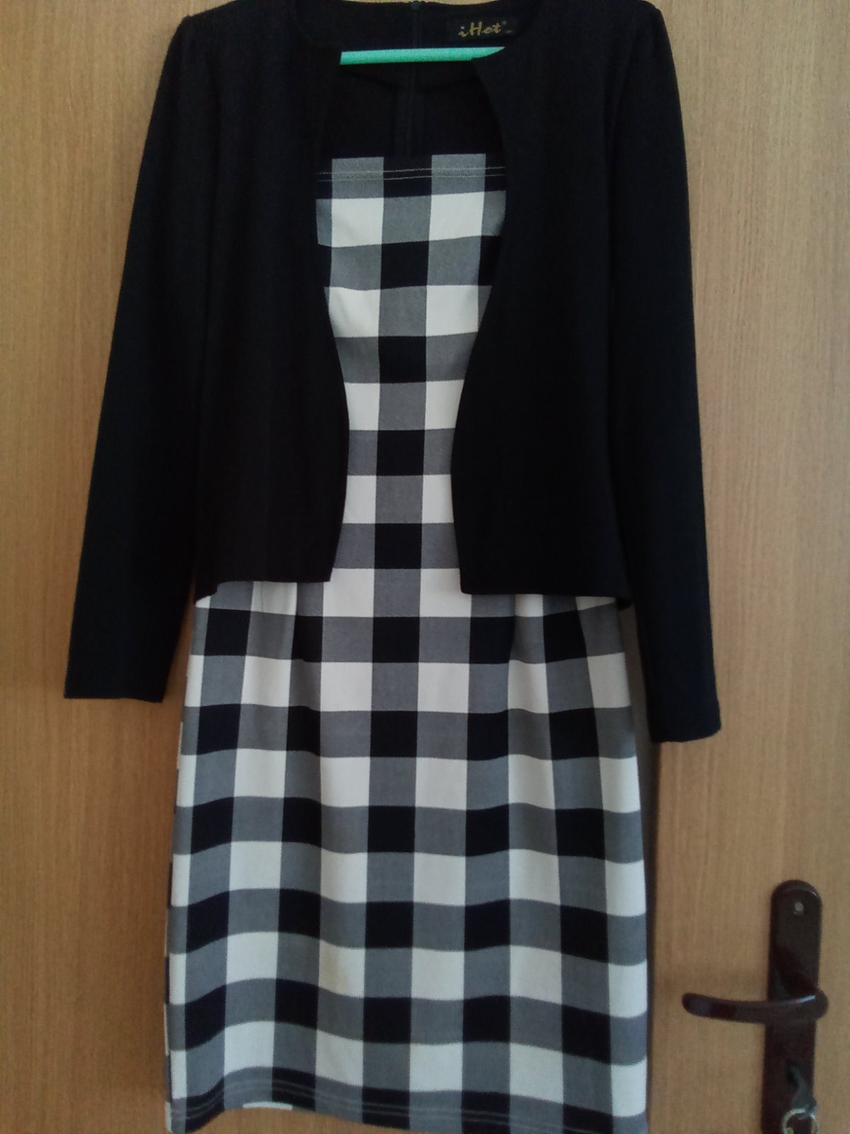 Šaty s kabátikom 2 v1,Zn.iHot,bielo čierna kocka,vzadu zips, veľmi pekné