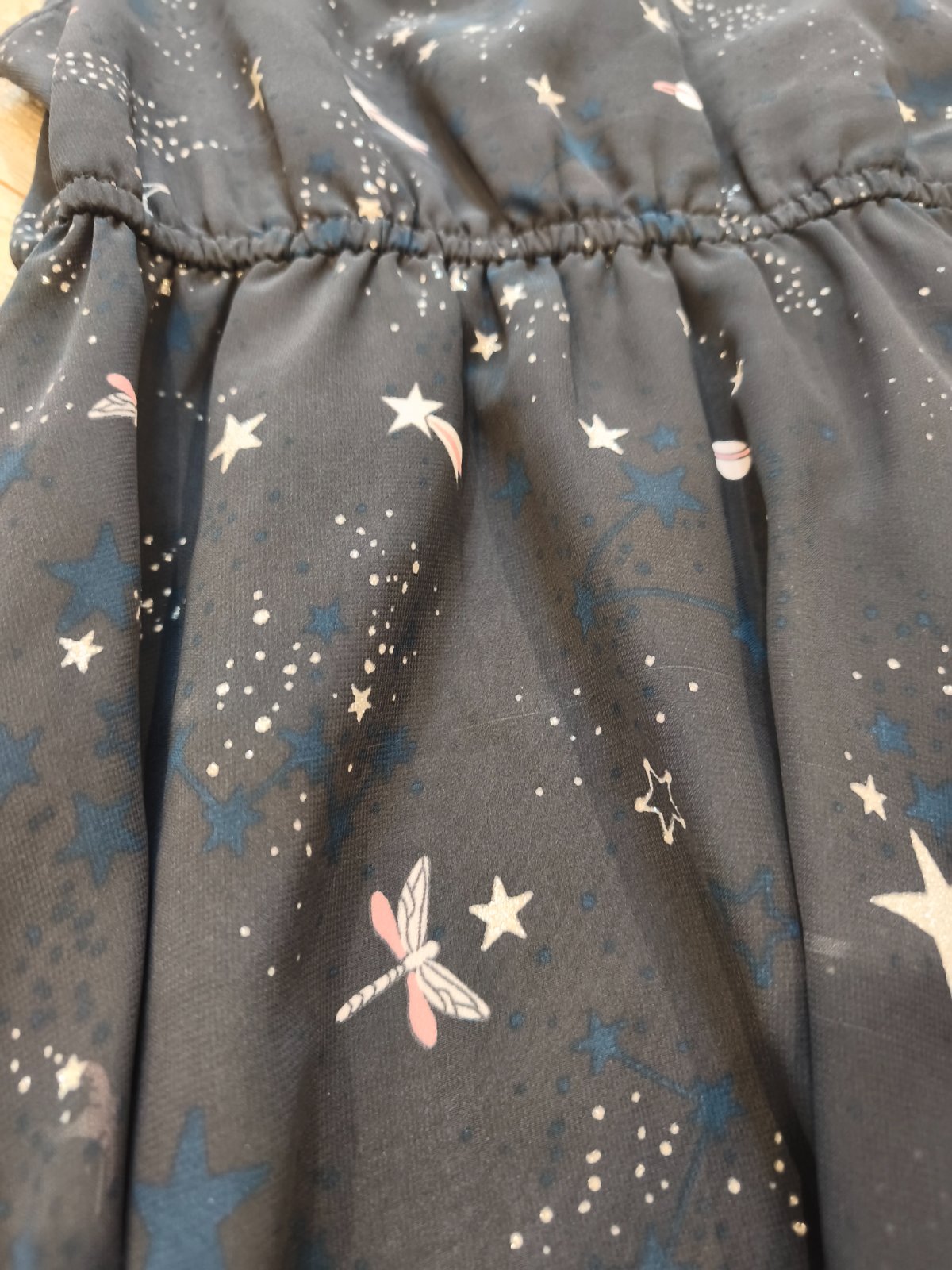• Asi 2 krat oblecene, pekny noseny stav, par zatiahnuti na sukni • na vrchnej casti take kovovo trblietave bodky • velkost pisana 122/128, rozmery nafotene