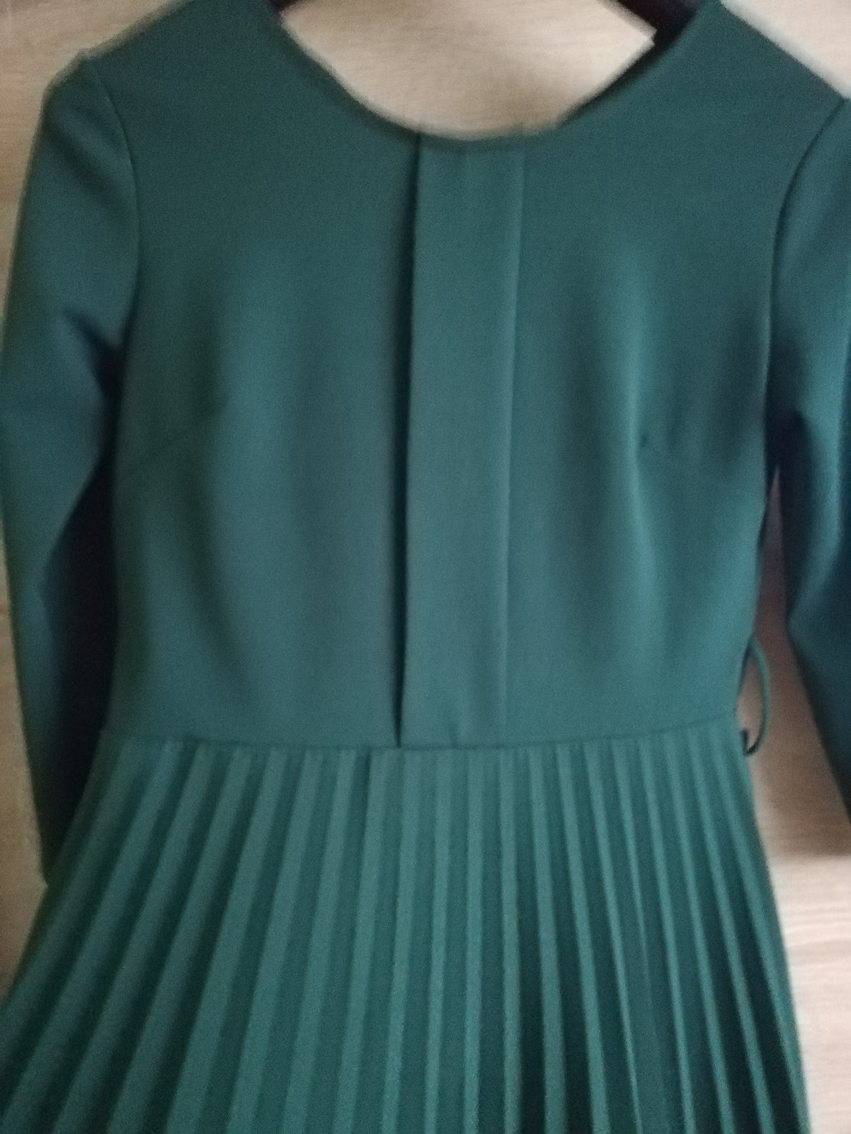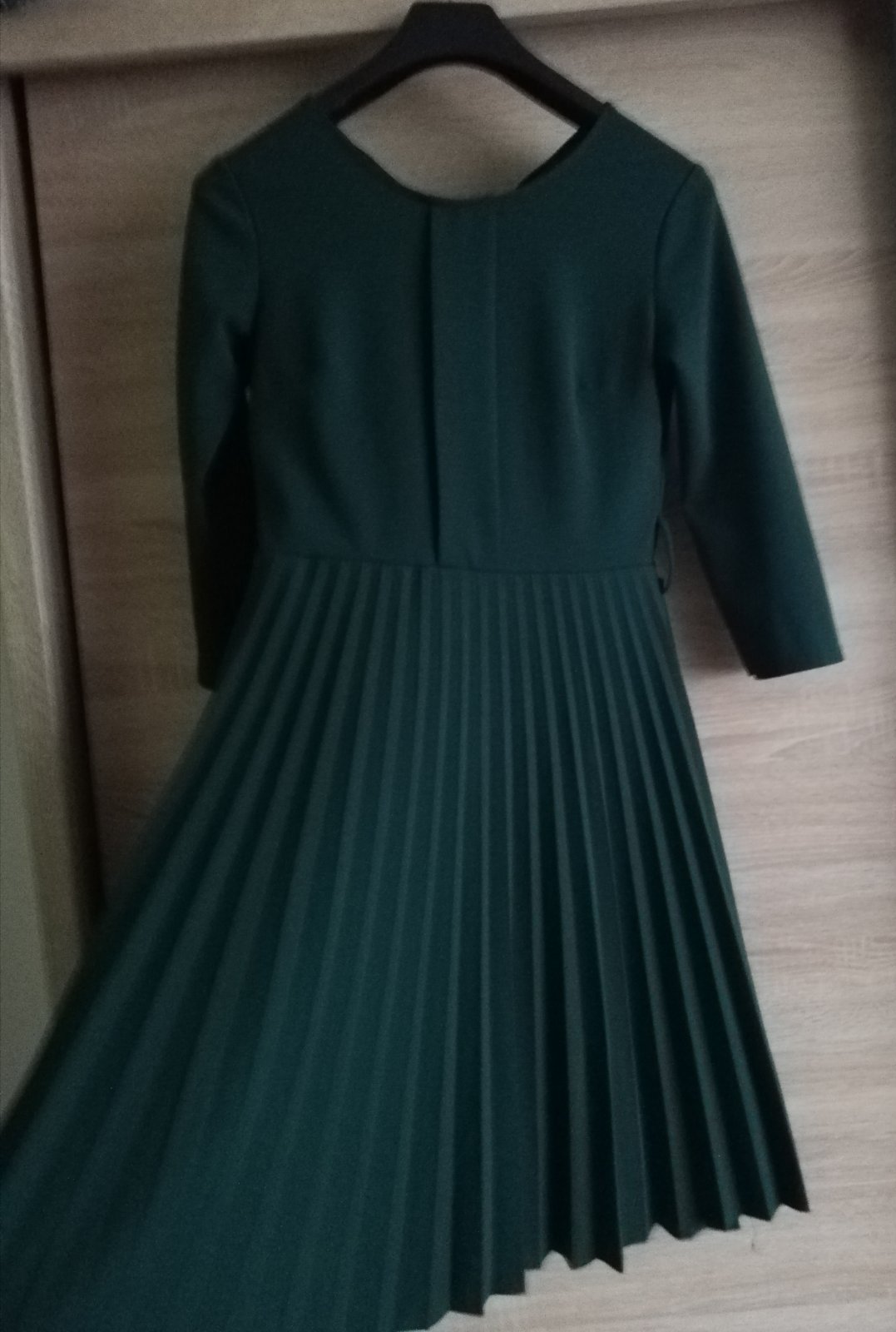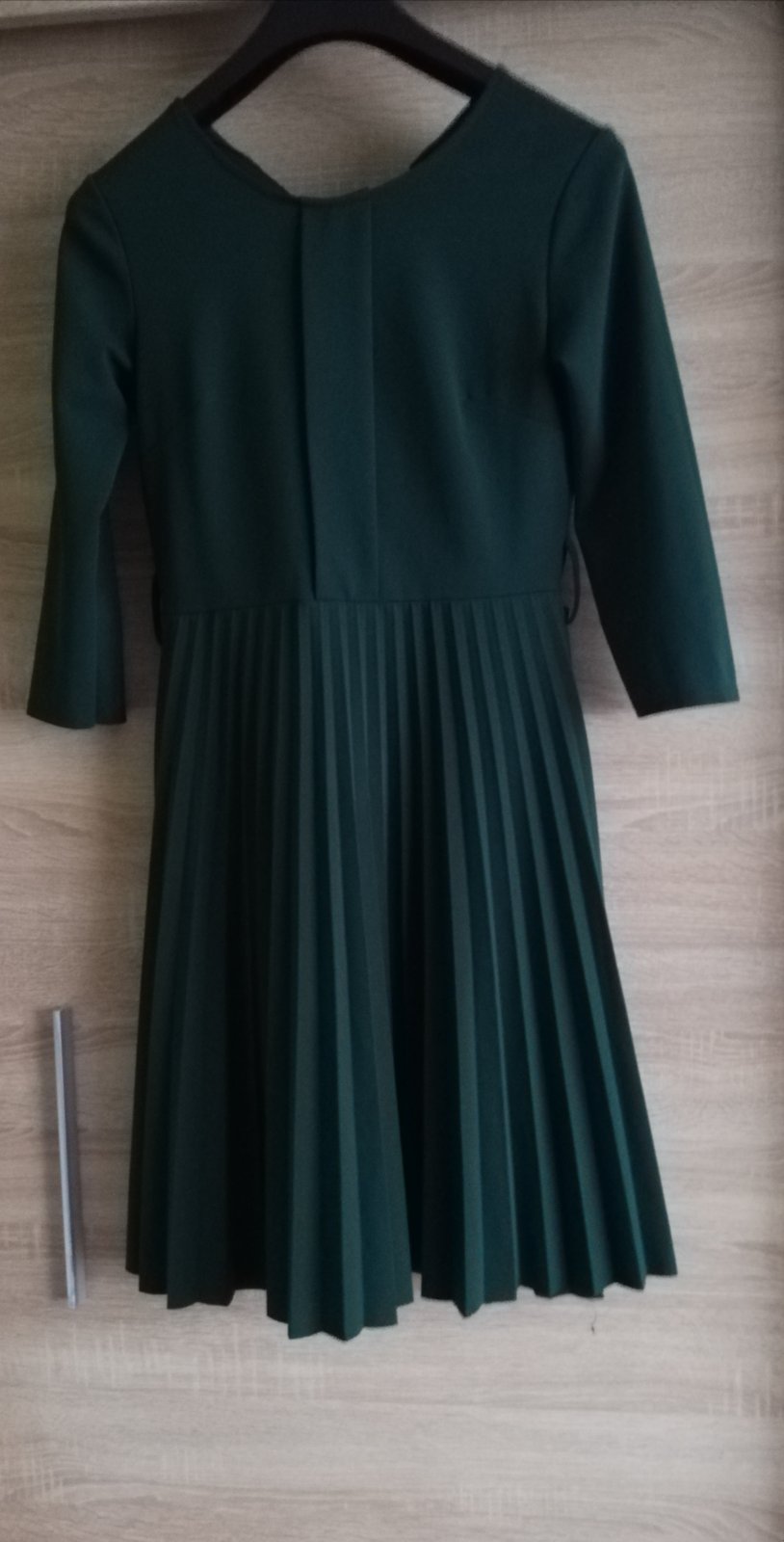 Tmavozelene šaty S s dlhým rukávom plysovanou suk