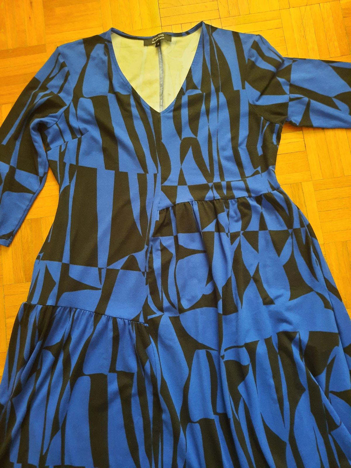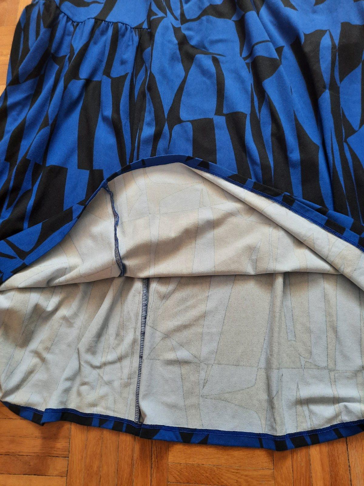 Zaujímavé vzorované dlhé šaty. Super nekrčivý materiál (ako elastický úplet), pohodlné na nosenie. Z boku sú aj vačky. Výborný stav.