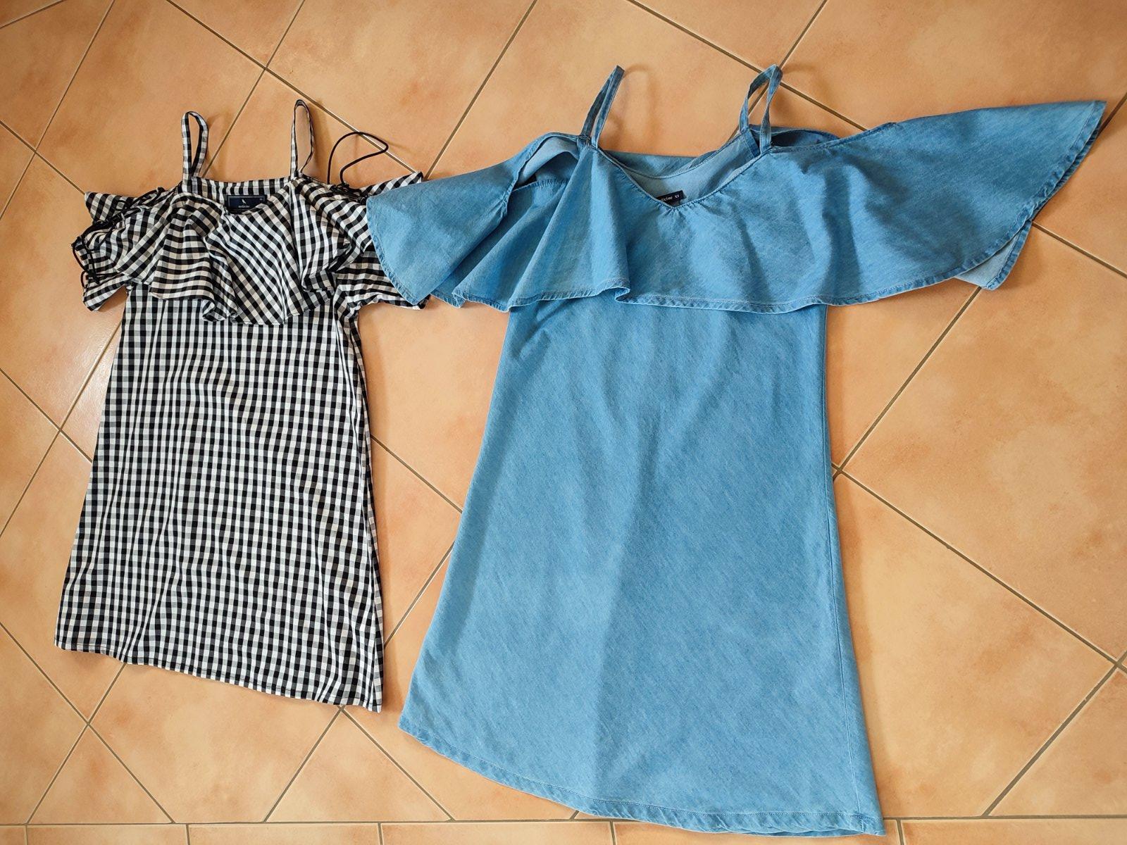 Nepoškodené letné denim šaty, tenké, ideálne na leto, nie sú vyblednuté, tak je to zámerne, tak boli zakúpené. Značka Cropp. Dľžka 80cm, pás 33cm. + pošta