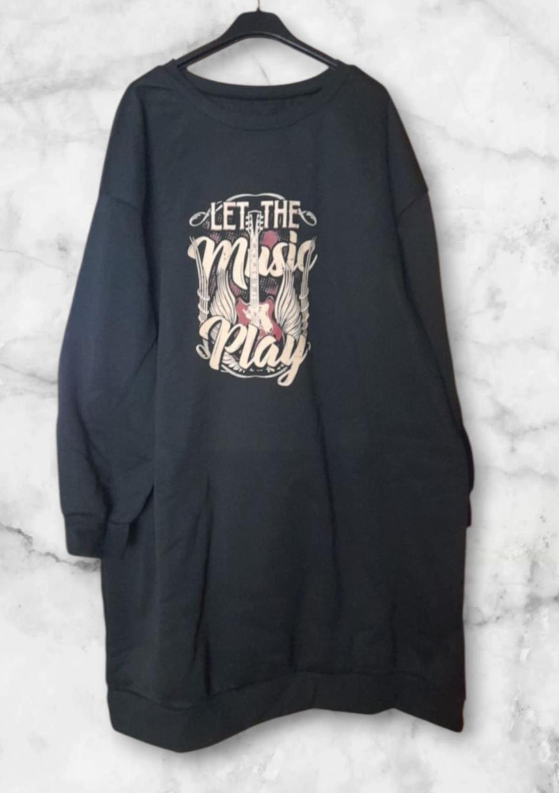teplejsie mikinove saty, s potlacou gitary, raz oblecená, súmi velke,preto posuvam
