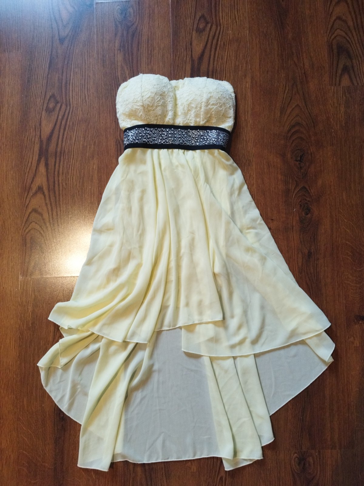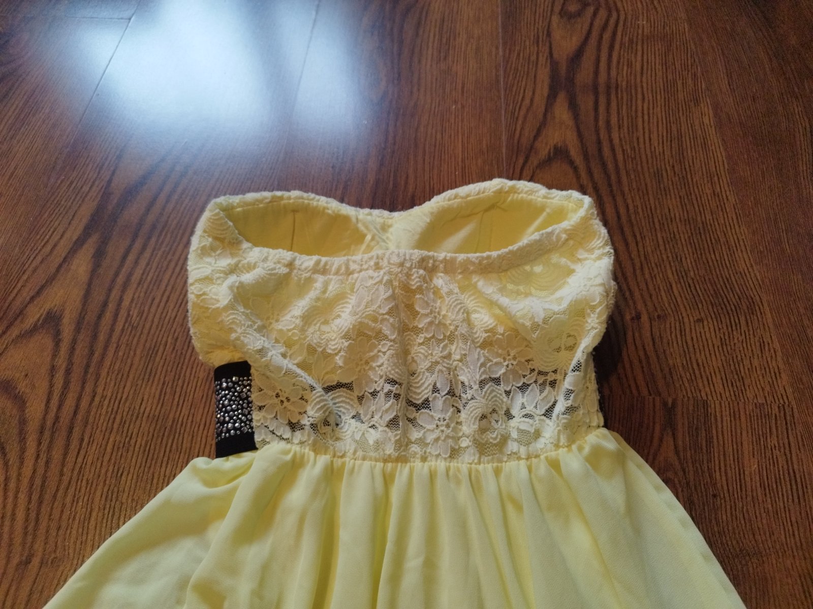 Krátke žlté spoločenské šaty, dva krát použité, stav ako nové. Veľkosť S, M - sú veľmi prispôsobivé. Majú krásnu nazberanú sukňu. K originál šatám som si došila ramienka z jemnej prispôsobivej žlt...